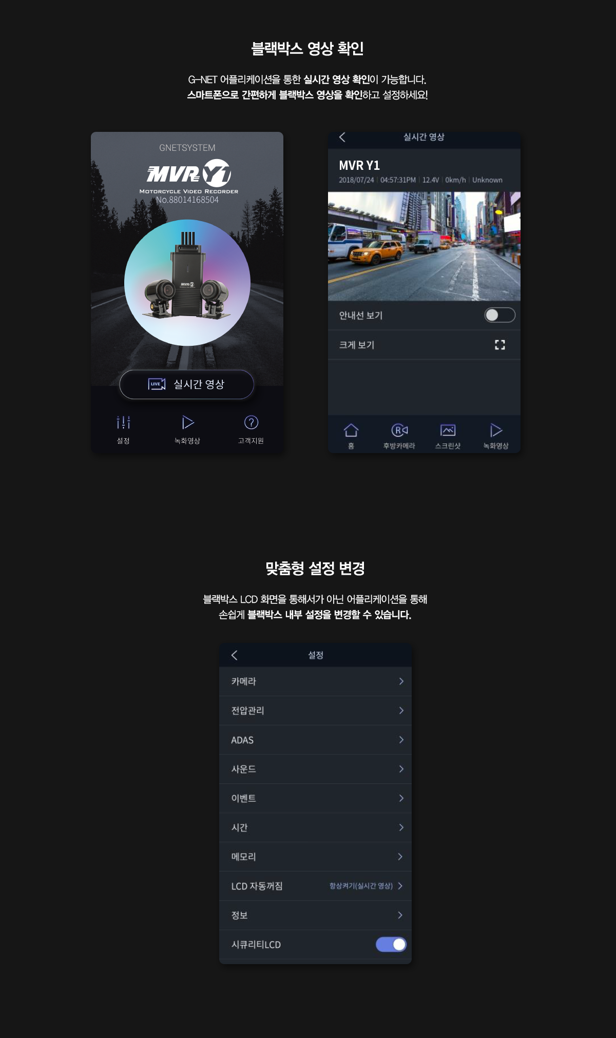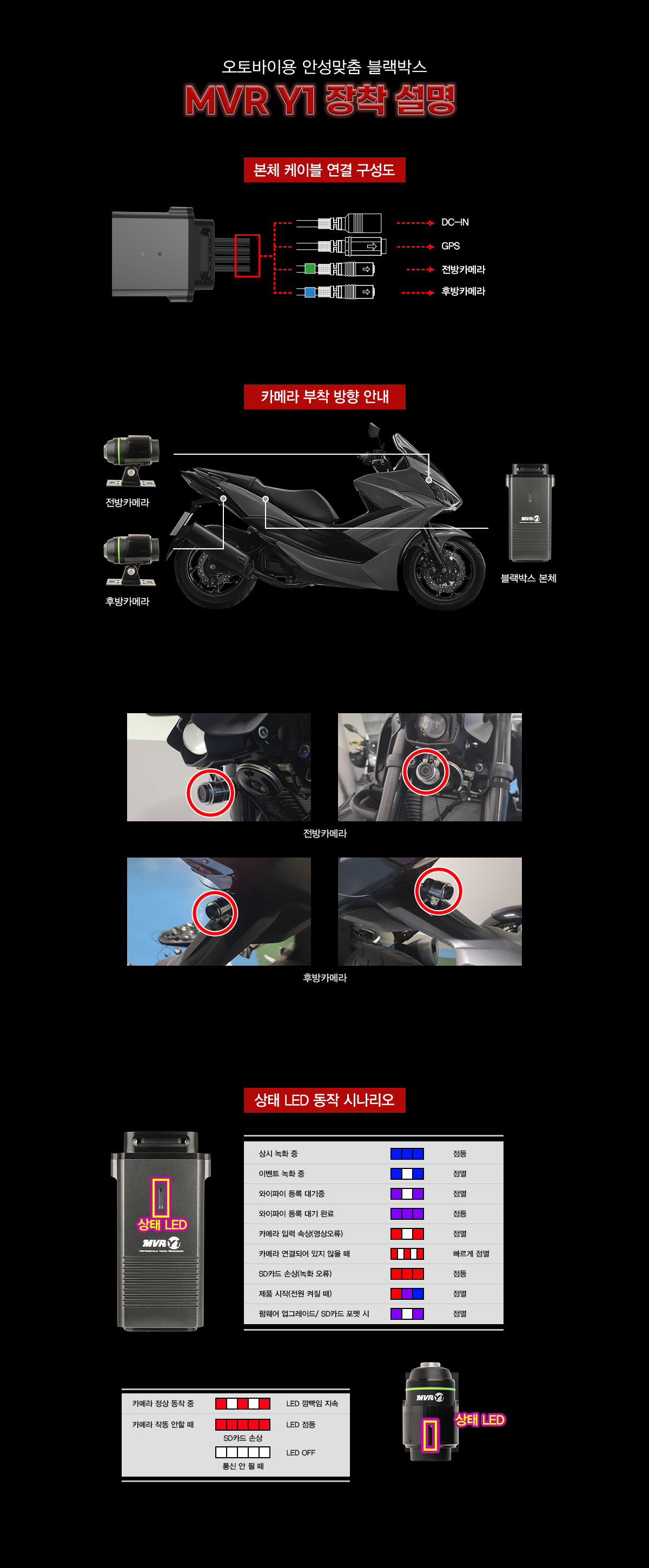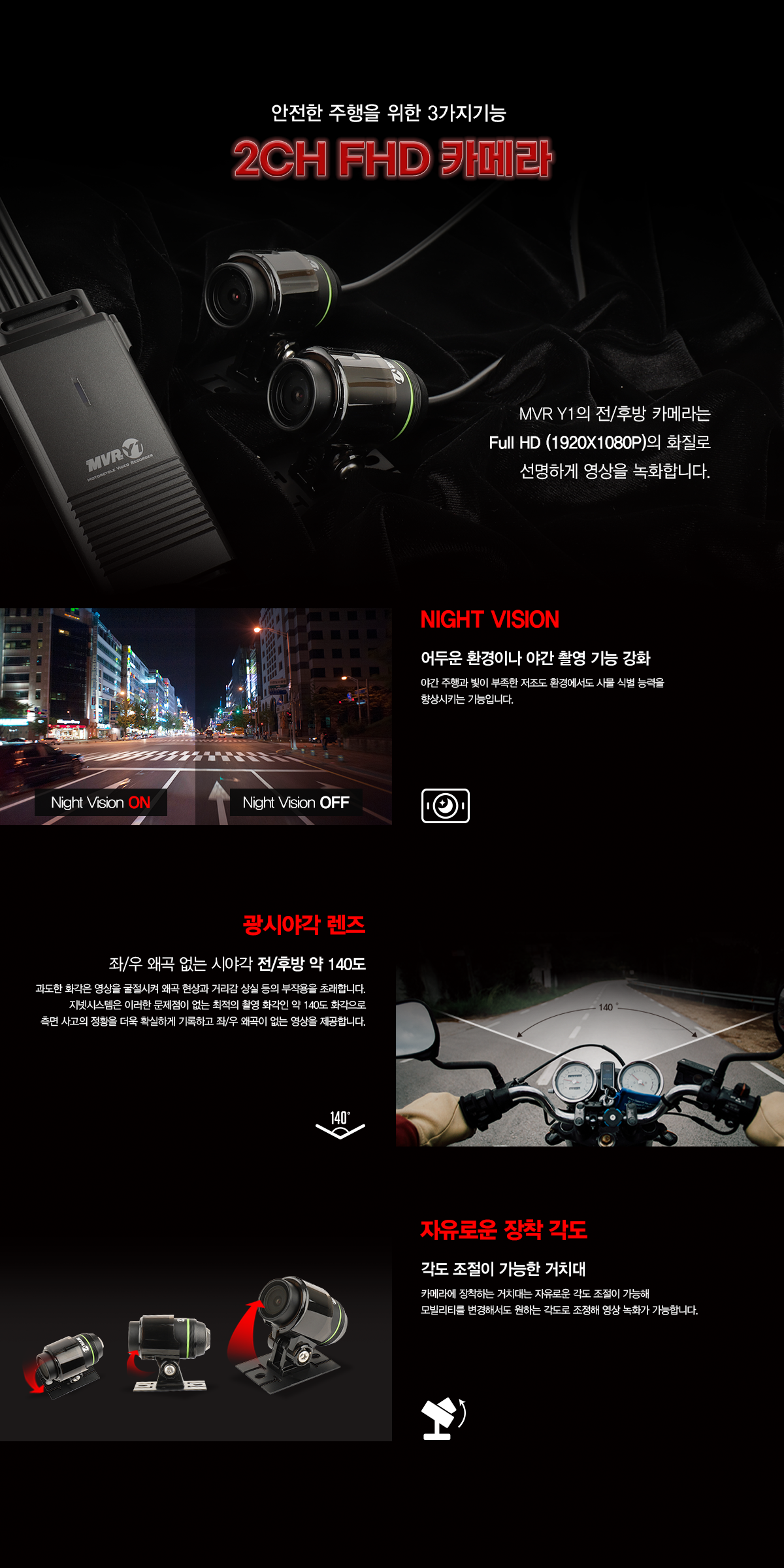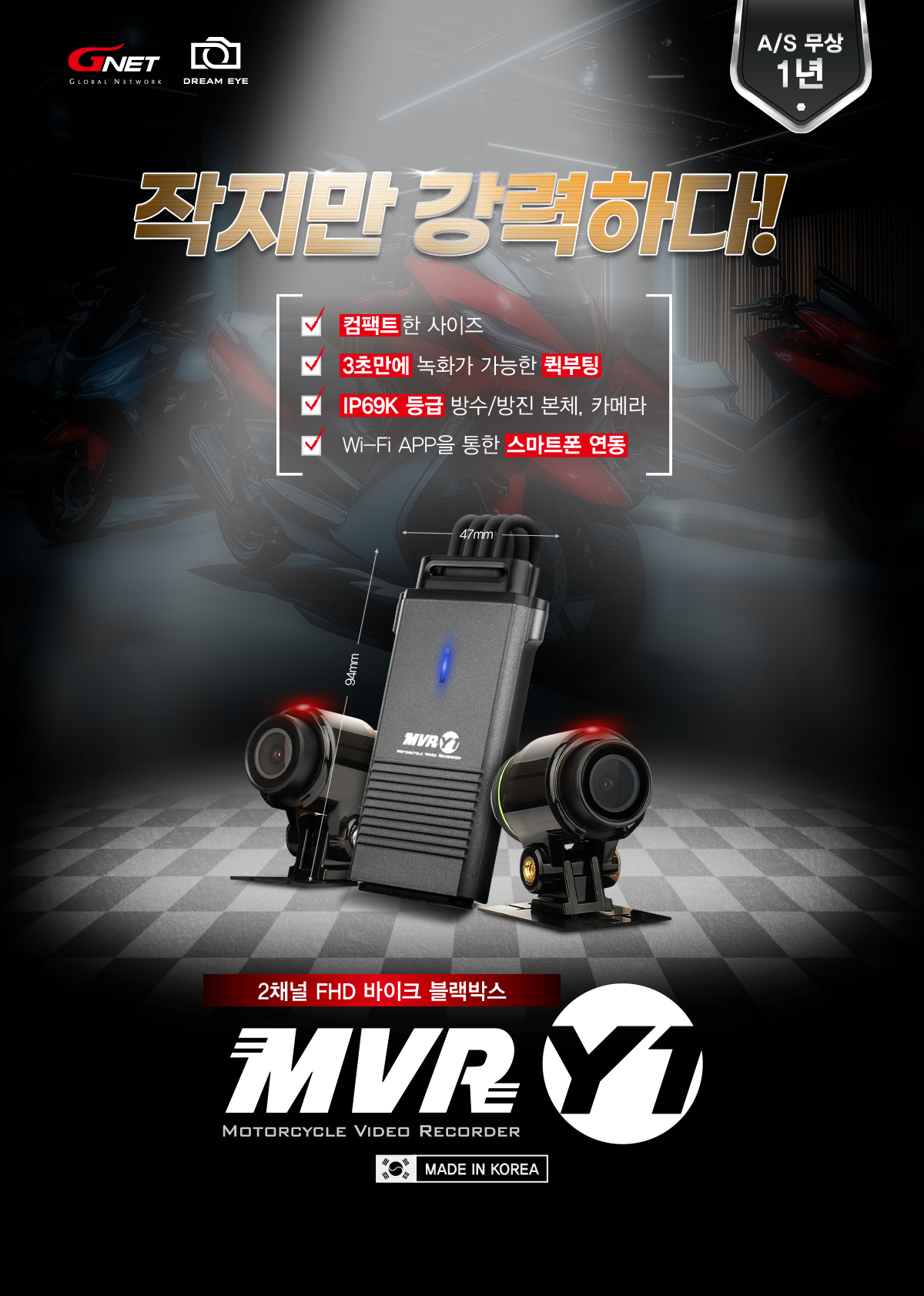 드림아이 지넷 MVR Y1 오토바이 바이크 블랙박스 2채널 FHD 방수카메라 64GB / Wi-Fi 동글이 포함