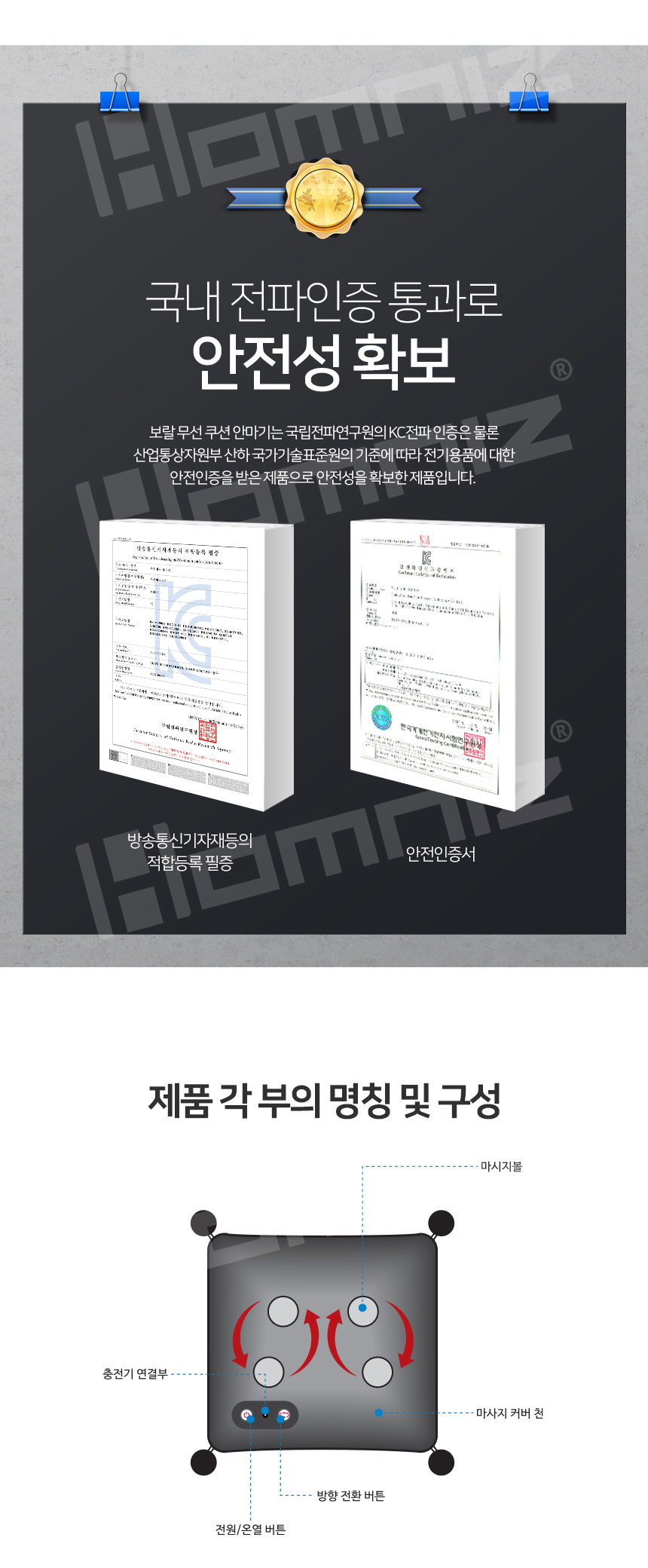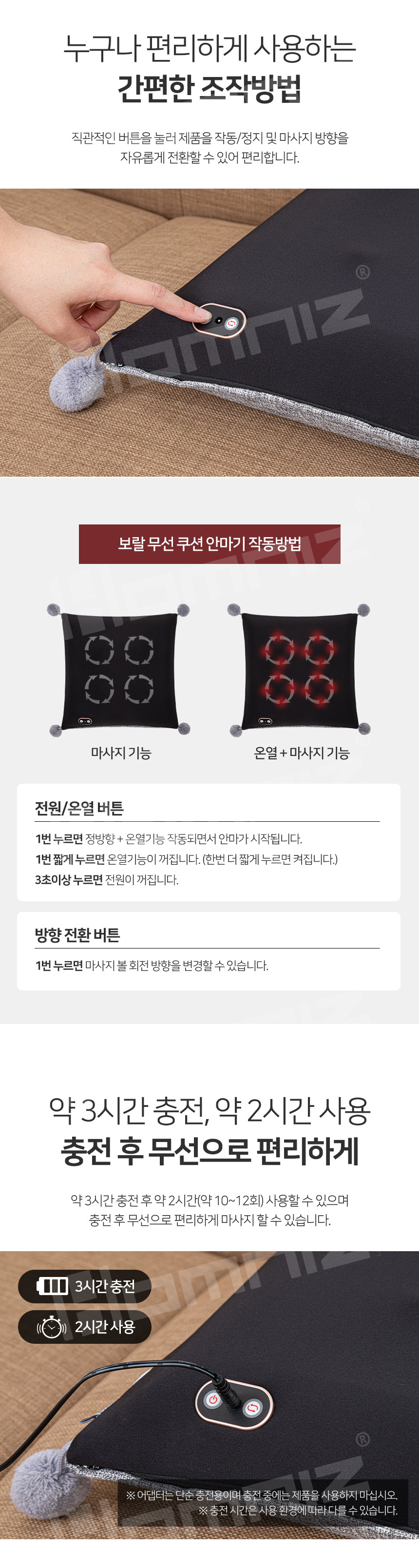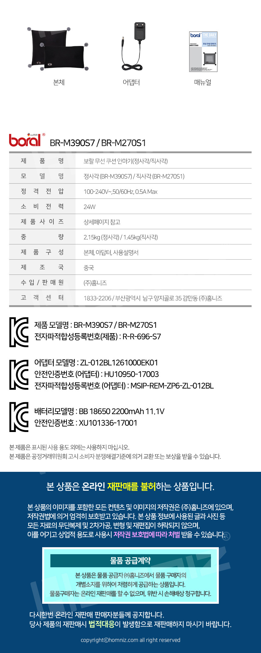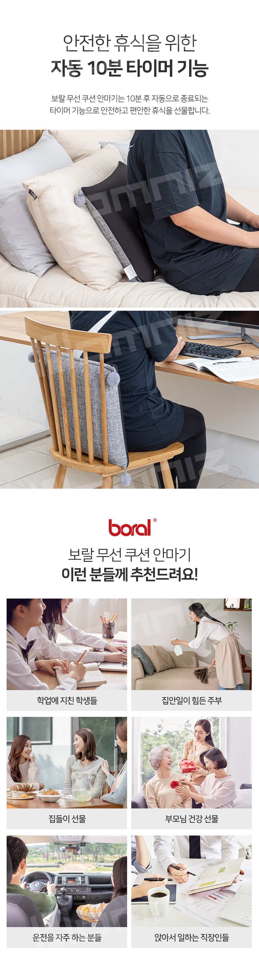 [보랄] 무선 쿠션 안마기 (직사각) BR-M270S1