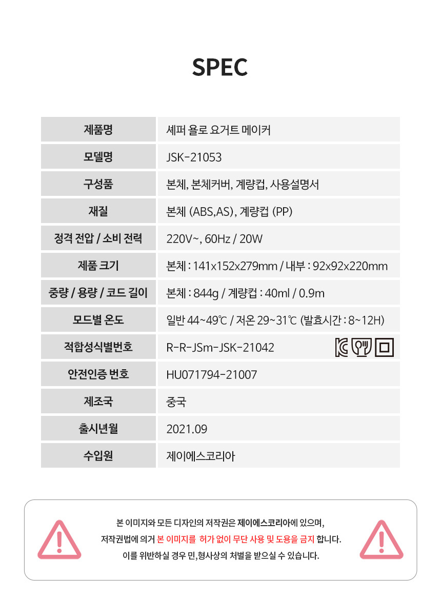 [셰퍼] 욜로 요거트메이커 JSK-21053