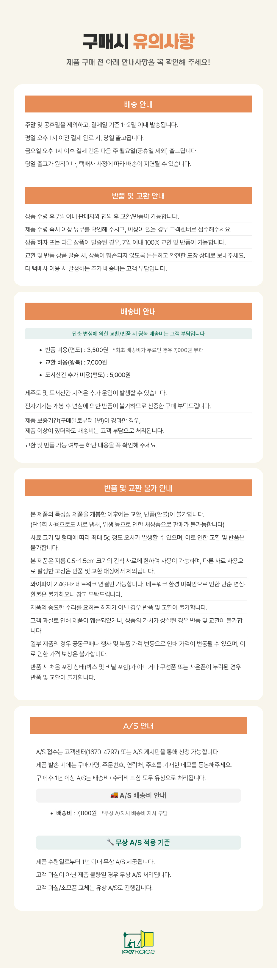 상품상세설명에 배송/교환/반품/취소 관련 안내가 기재된 경우 다음 안내사항보다 우선 적용됩니다.