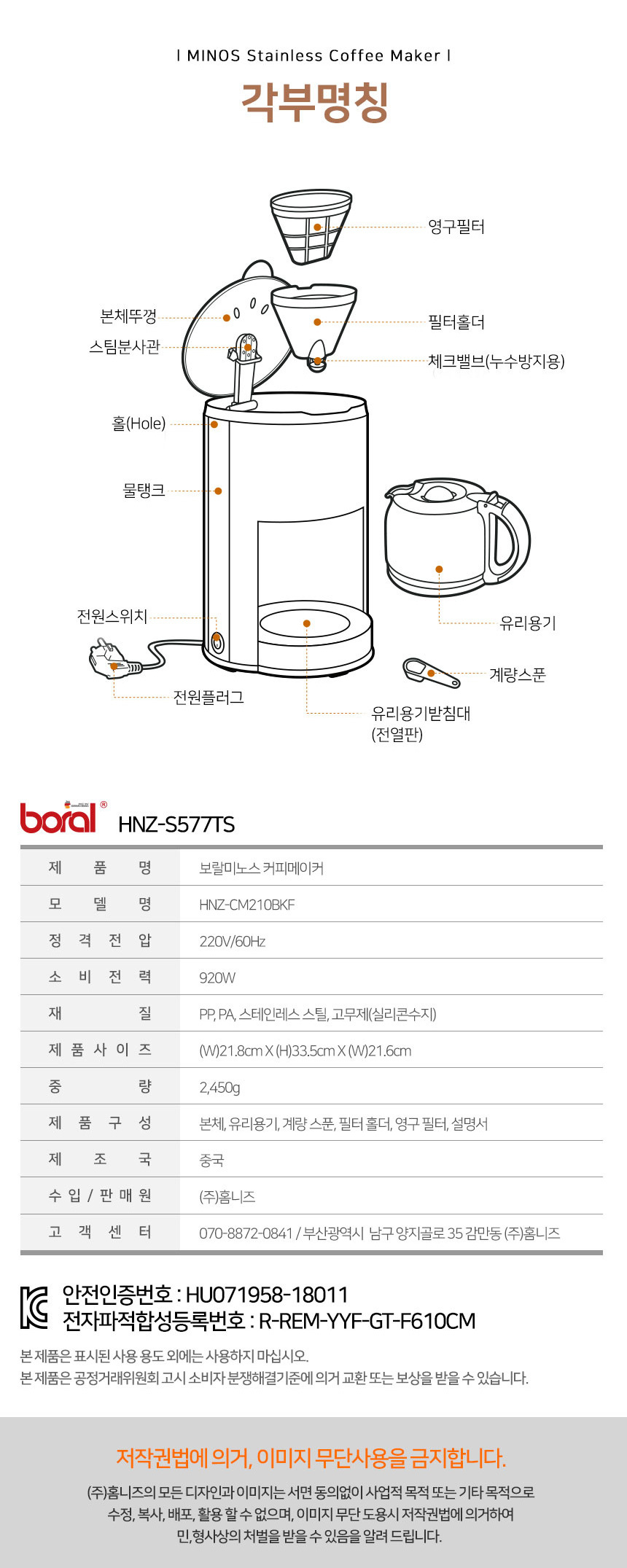 [보랄] 미노스 커피메이커 HNZ-CM210BKF