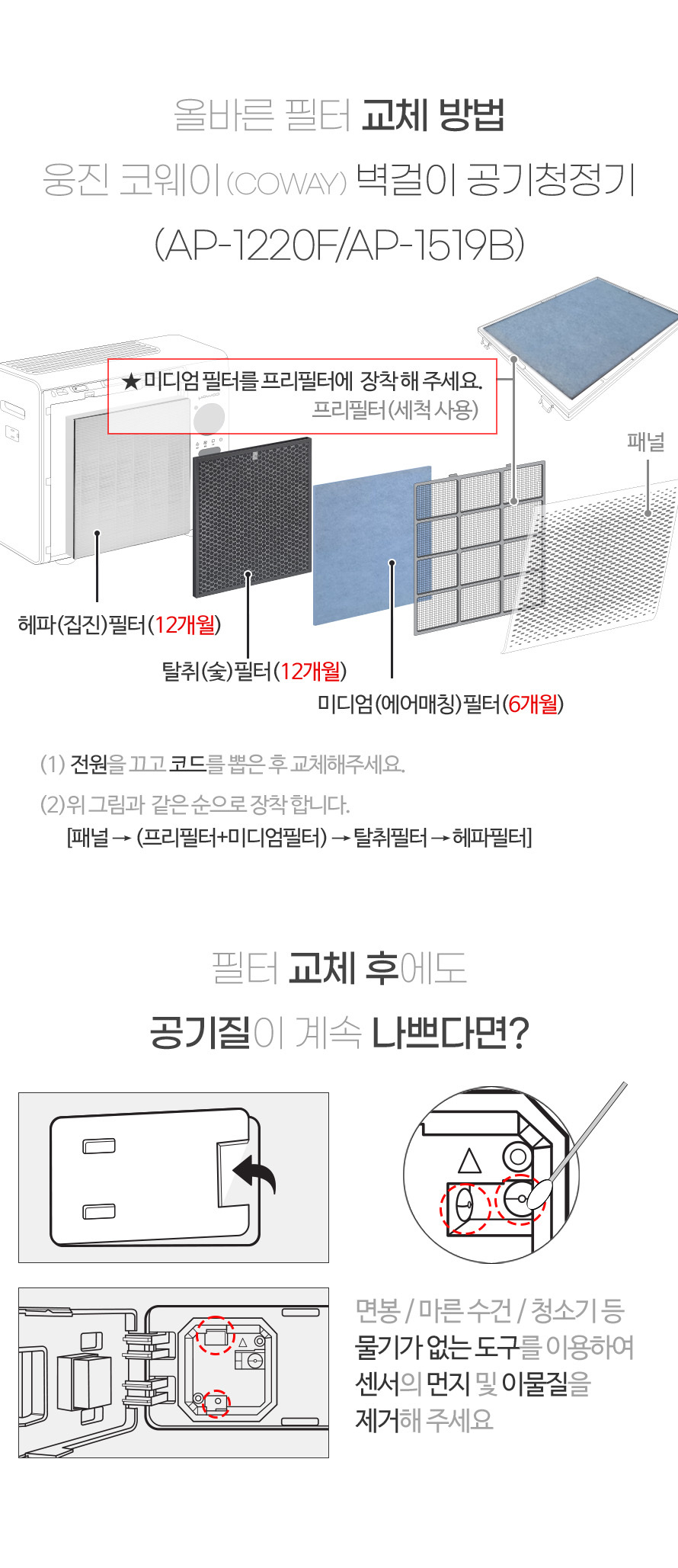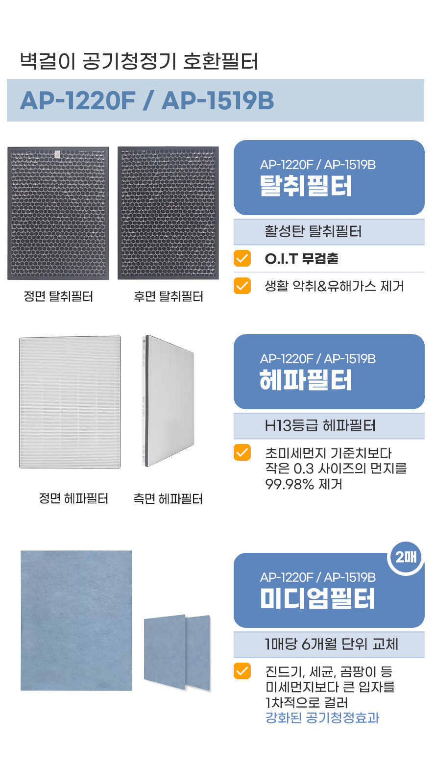[메이저필터] 국내생산 웅진 코웨이 공기청정기 호환필터 AP-1220F AP-1519B