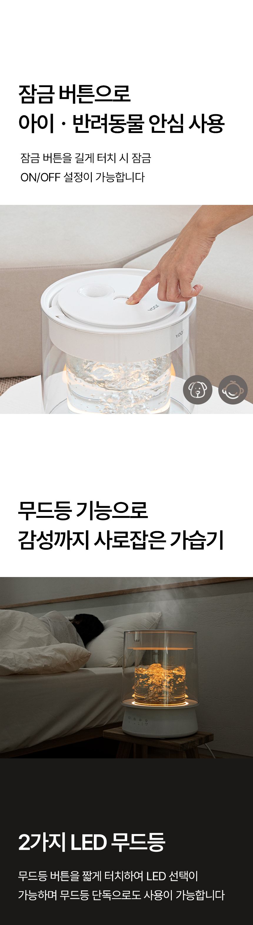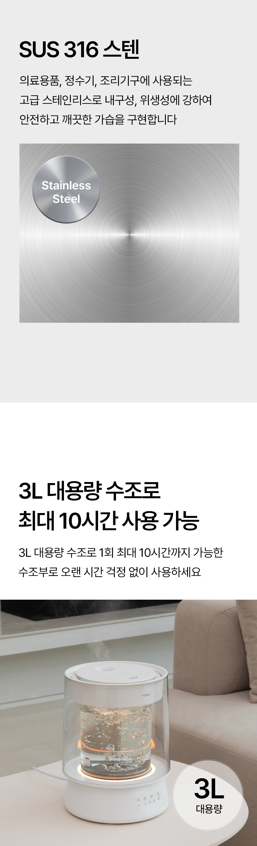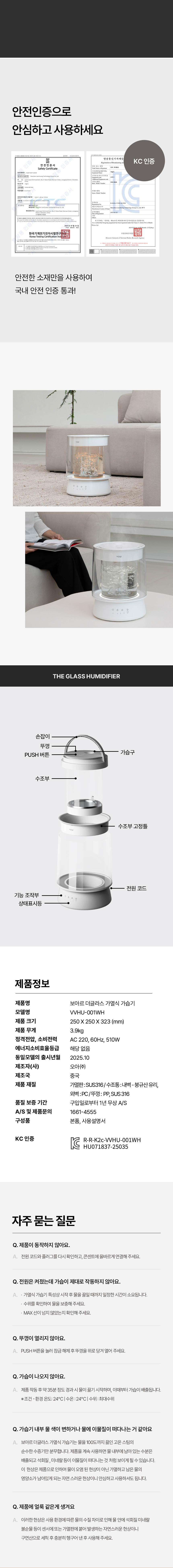 [보아르] 더글라스 물멍 가열식 가습기 분리세척 대용량 통유리 무드등 아기 신생아 저소음 스텐