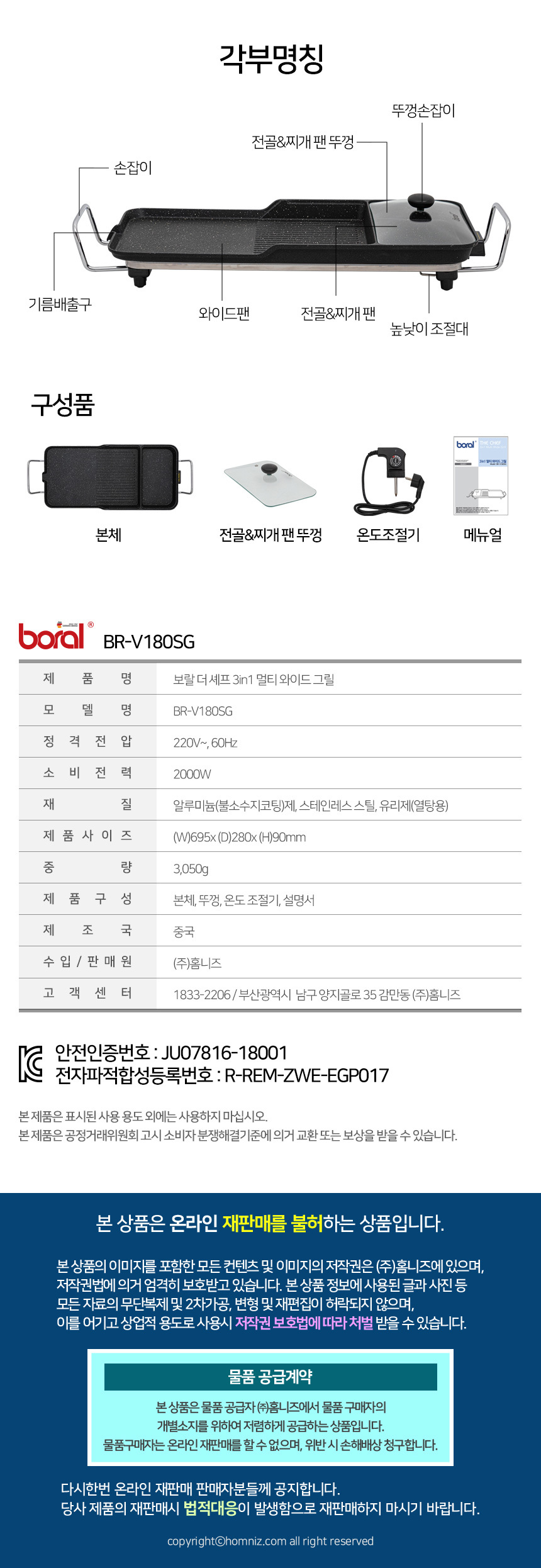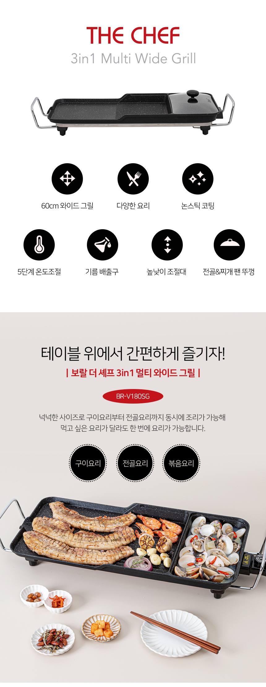 [보랄] 더 셰프 3IN1 멀티와이드그릴 BR-V180SG