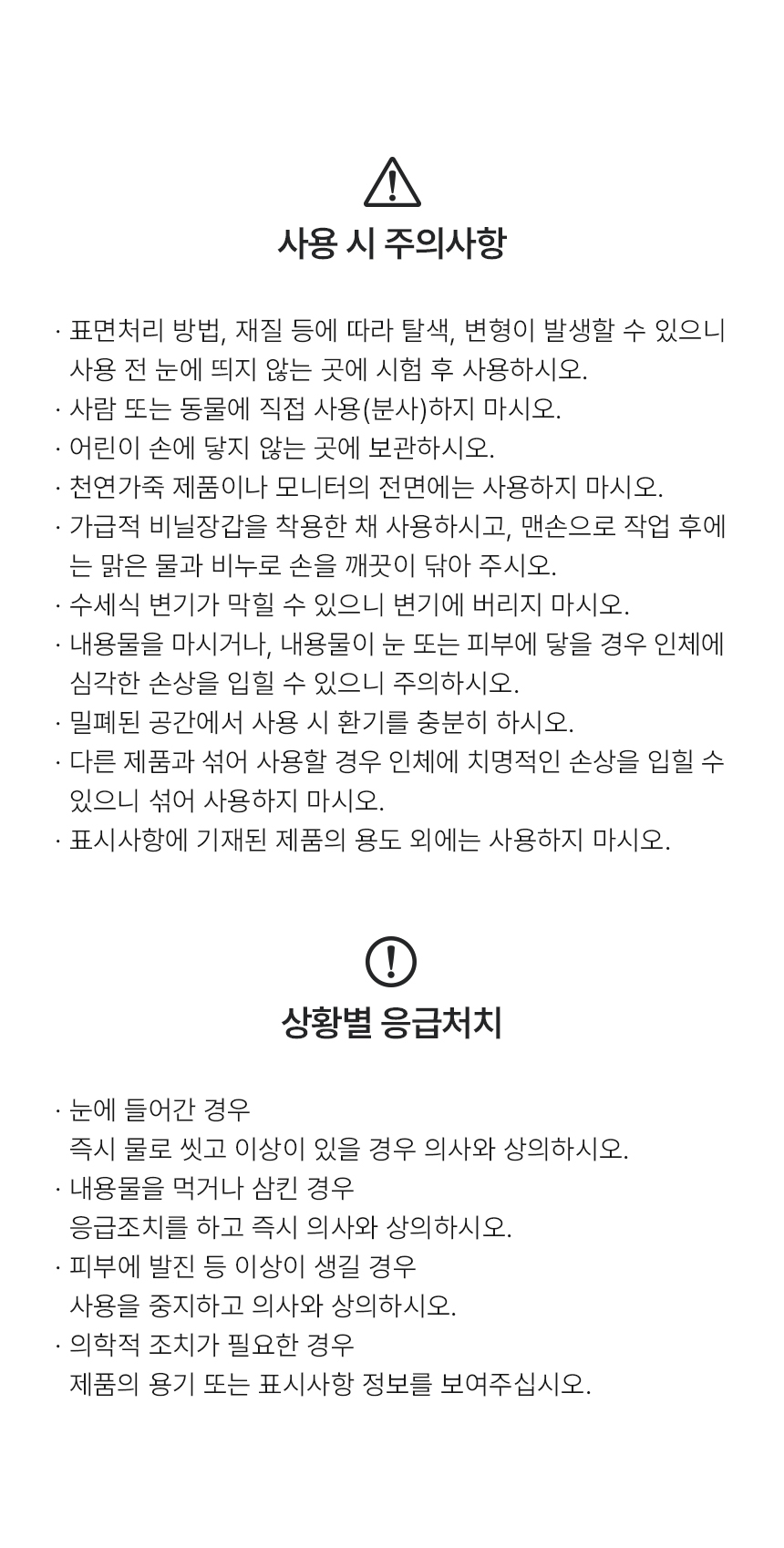 • 반품/교환은 미사용 제품에 한해 배송완료 후 7일 이내 접수하여 주십시오.