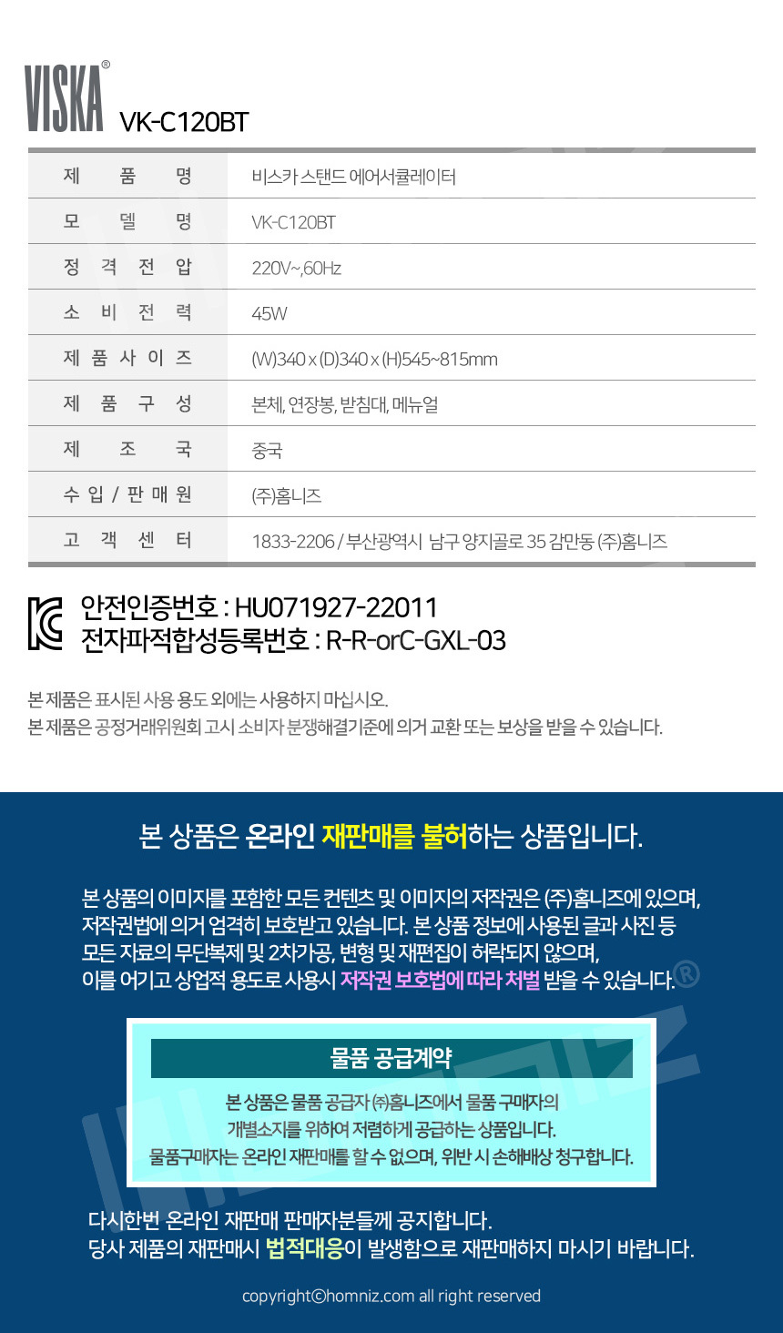 [비스카] 스탠드 에어서큘레이터 (기계식) VK-C120BT