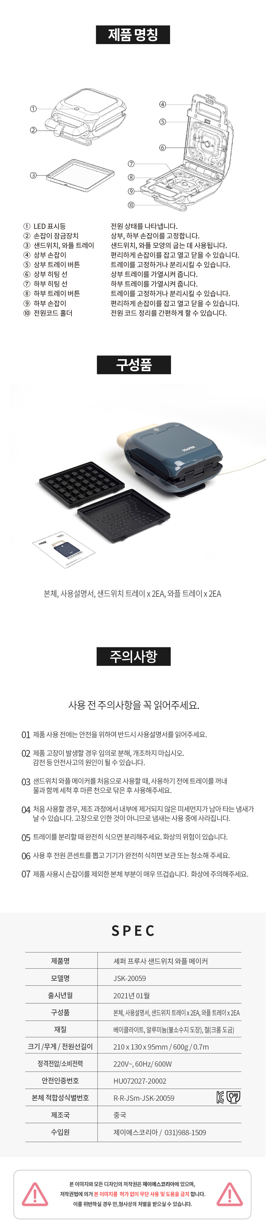 [셰퍼] 프루사 샌드위치 와플 메이커 JSK-20059