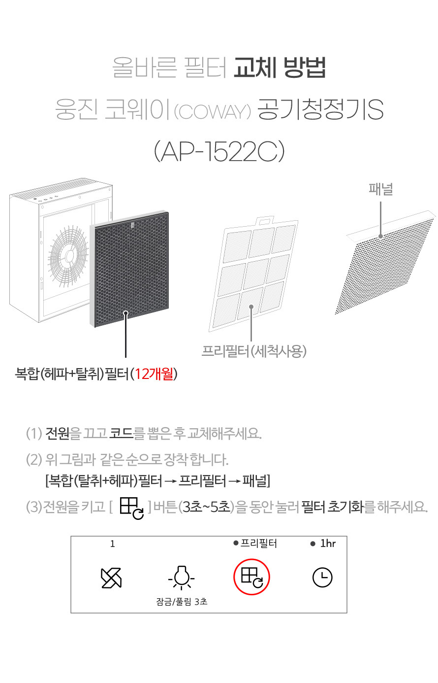 [메이저필터] 국내생산 웅진 코웨이 공기청정기 호환필터 AP-1522C