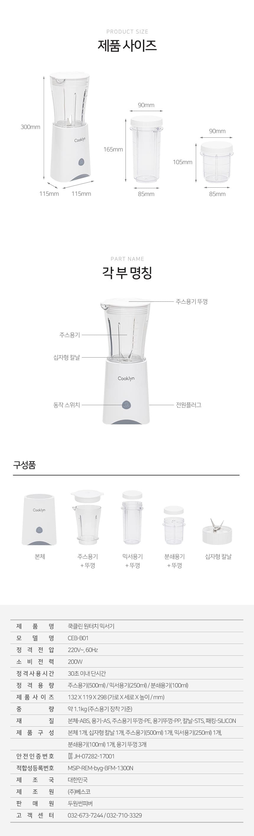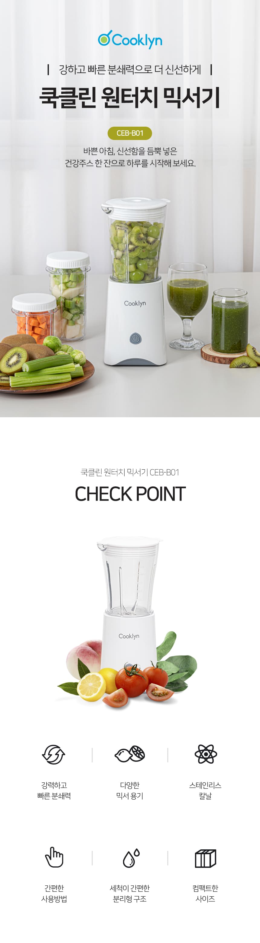 [쿡클린] 국산 원터치 믹서기 CEB-B01