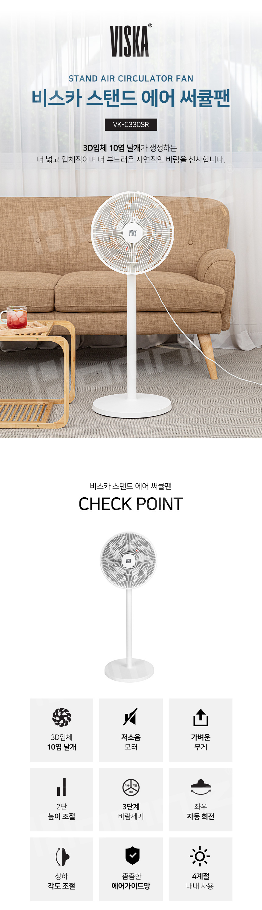 [비스카] 2in1 키높이 에어써큘레이터 (기계식) 화이트 VK-PE700AC