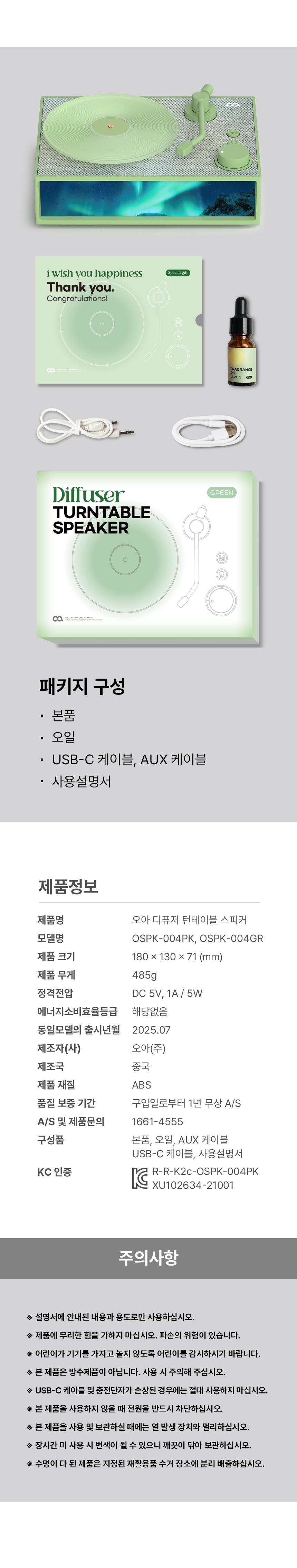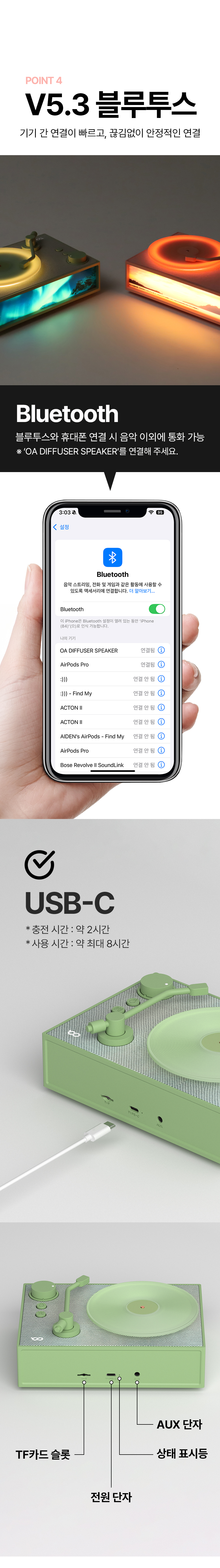 오아 디퓨저 턴테이블스피커 무선 블루투스 아로마 LP 감성 힐링 인테리어 무드등 집들이선물