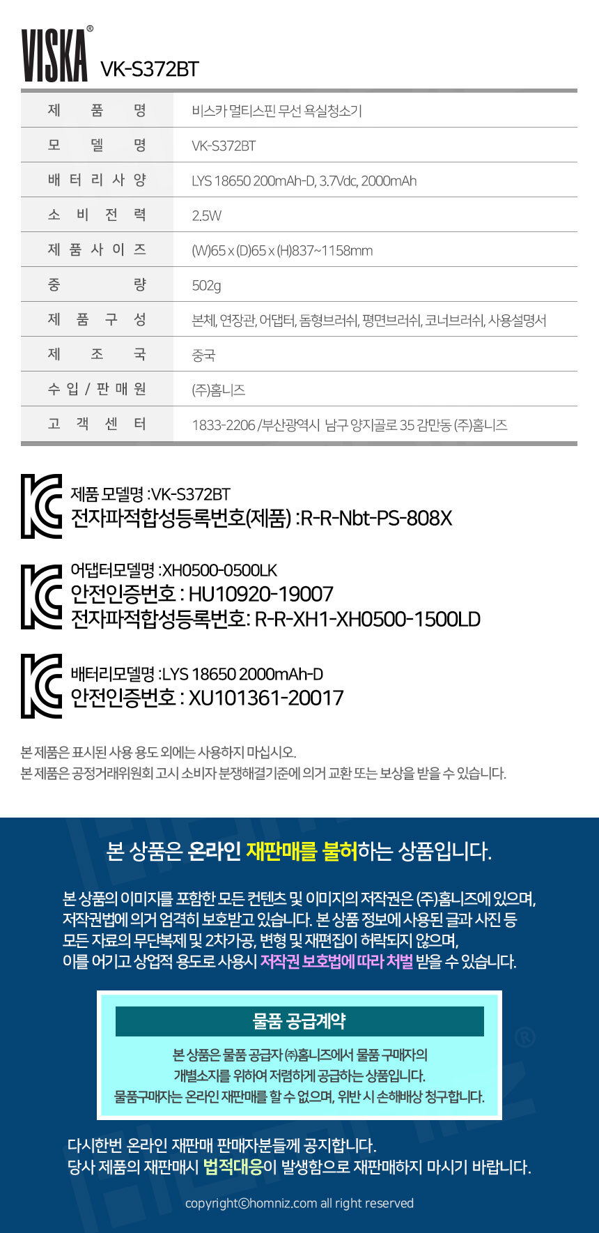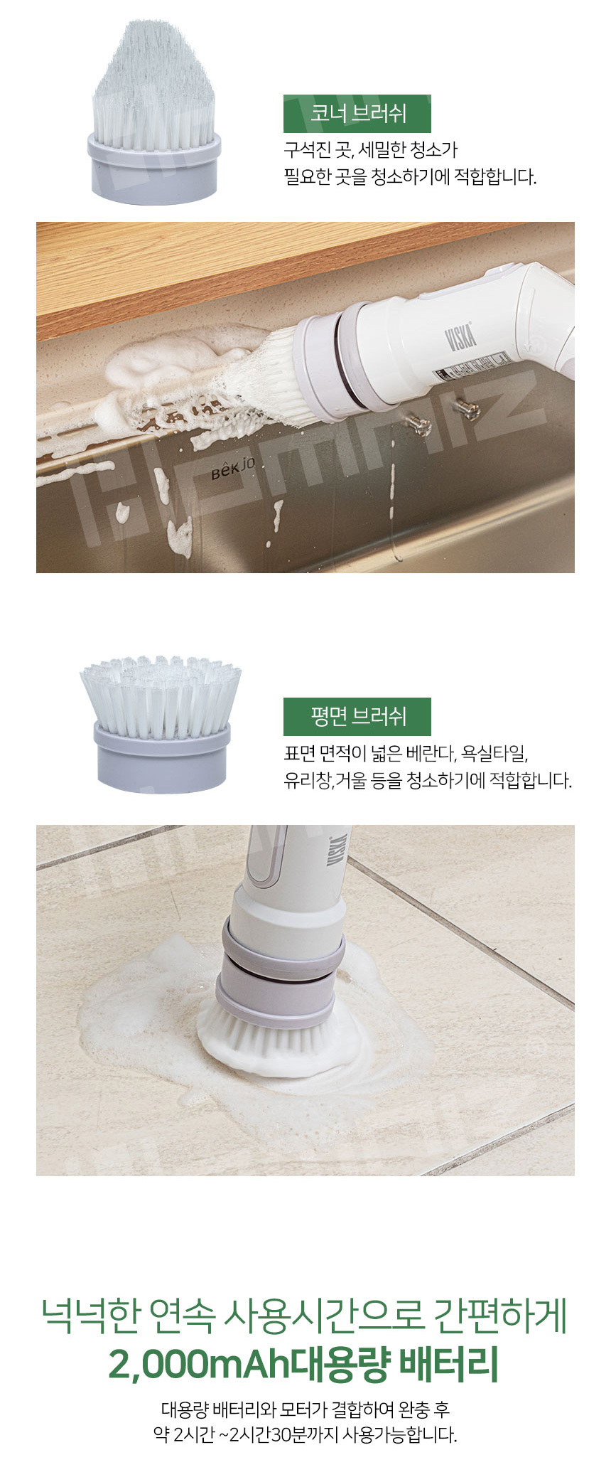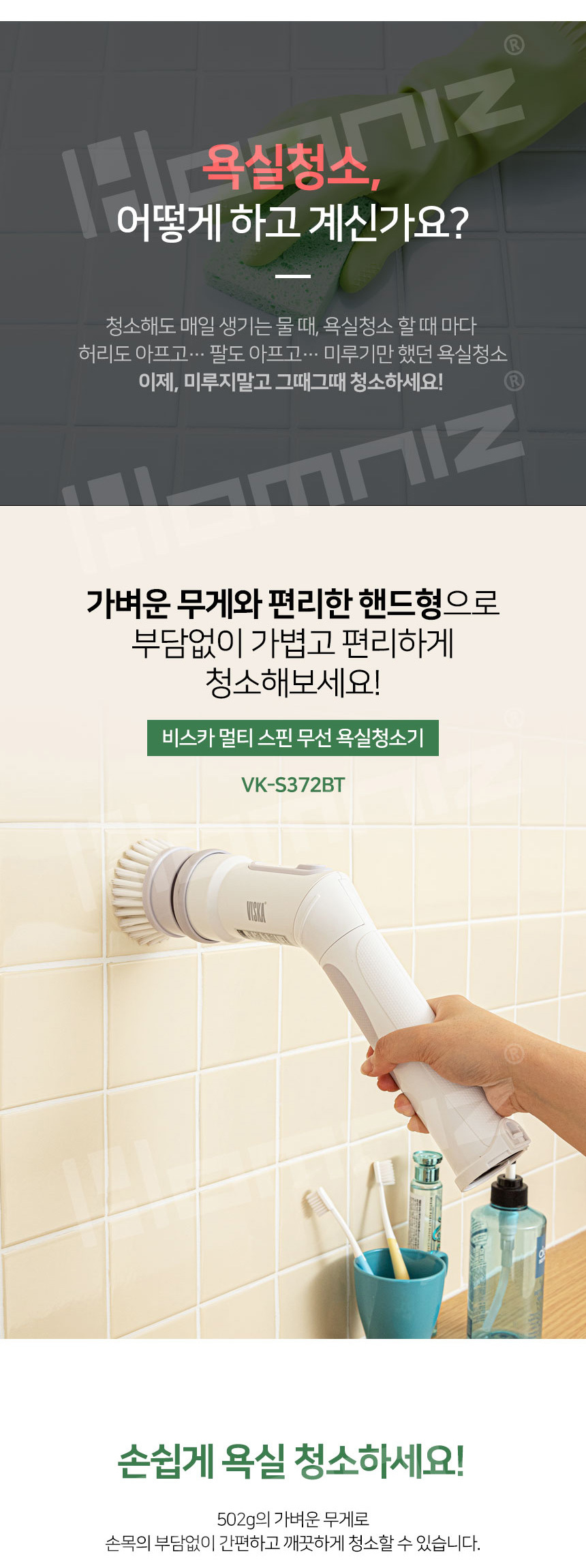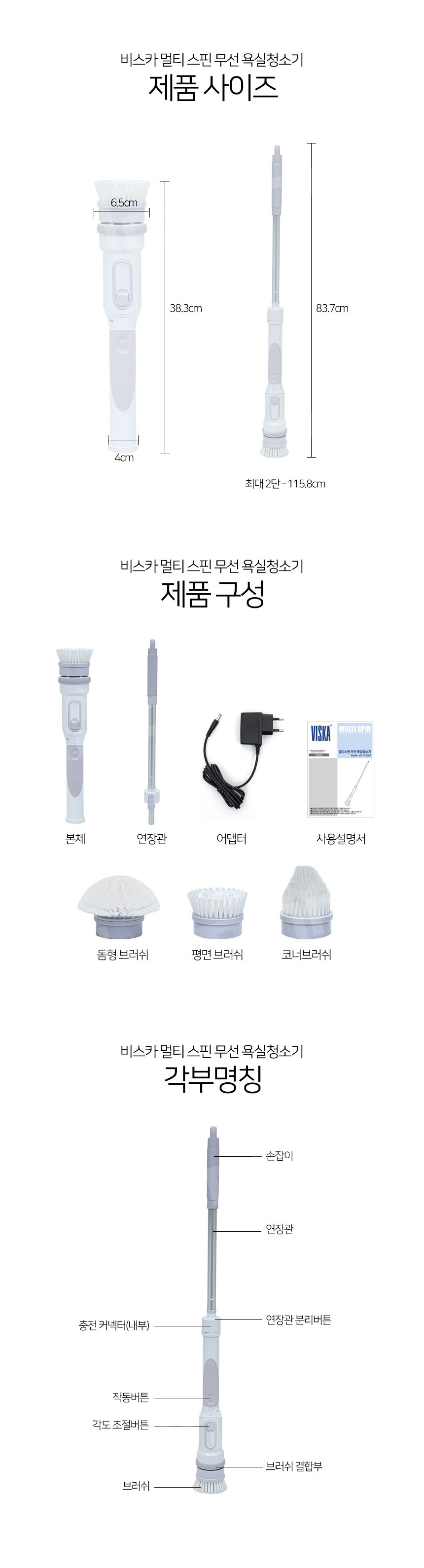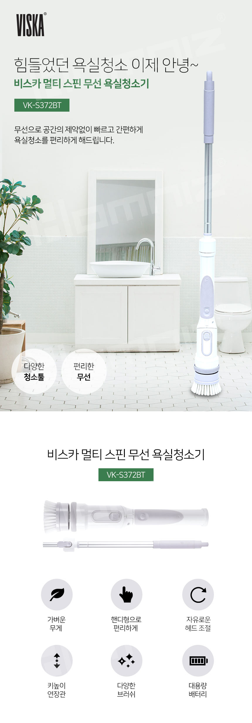 [비스카] 멀티스핀 무선 욕실청소기 VK-S372BT