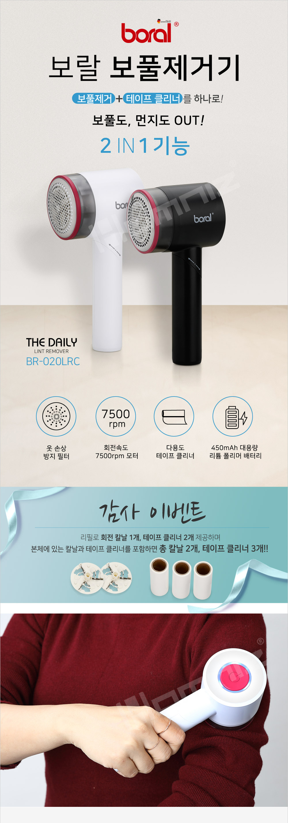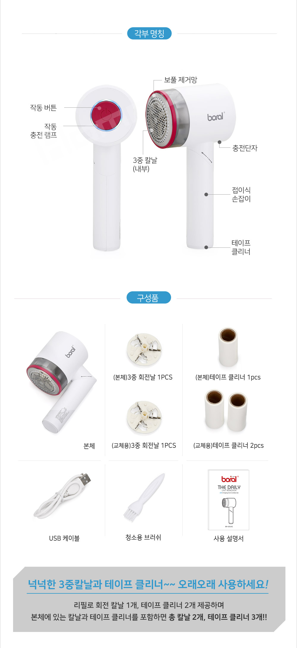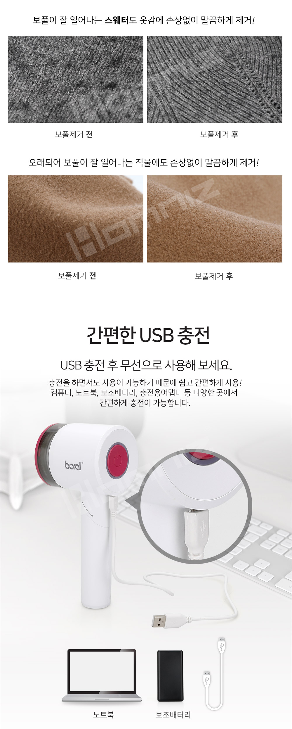 [보랄] 더 데일리 USB 충전식 보풀제거기 (화이트/블랙) BR-020LRC