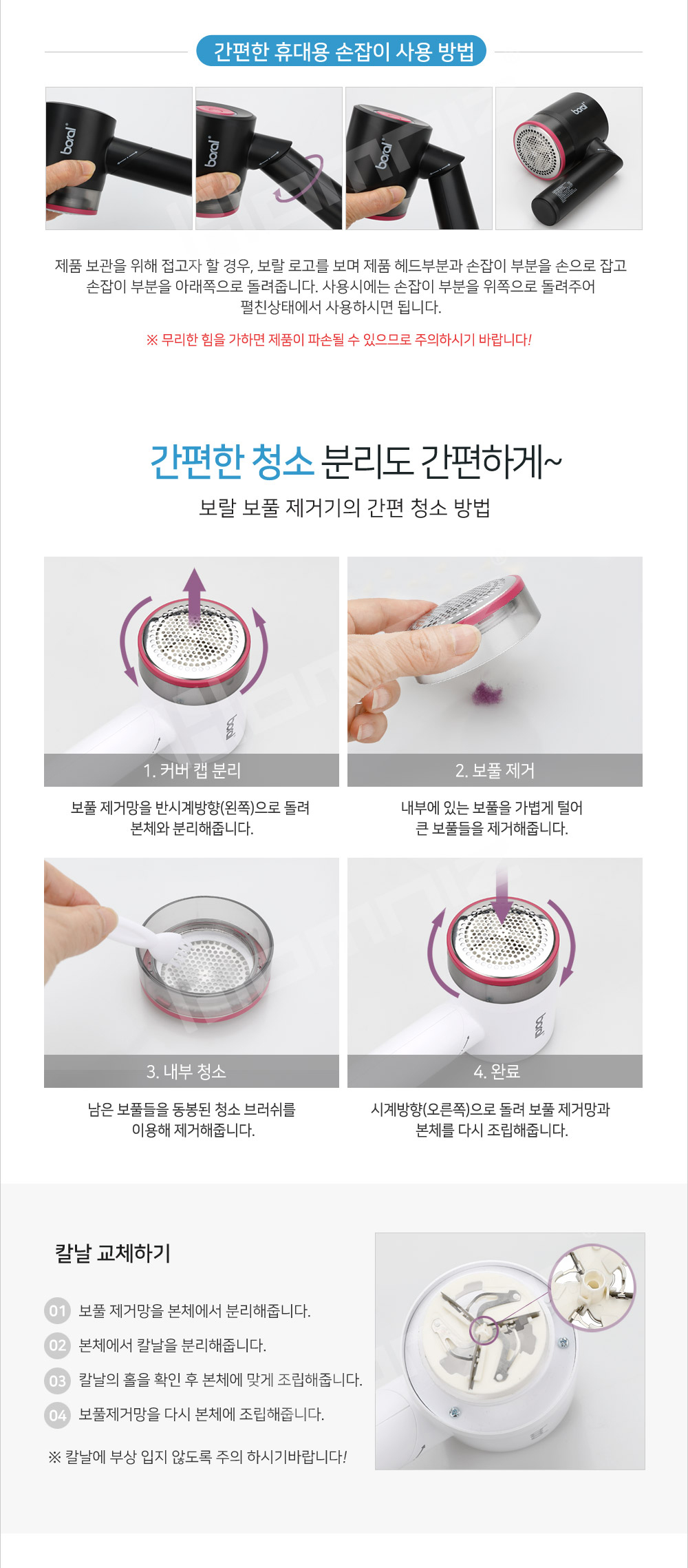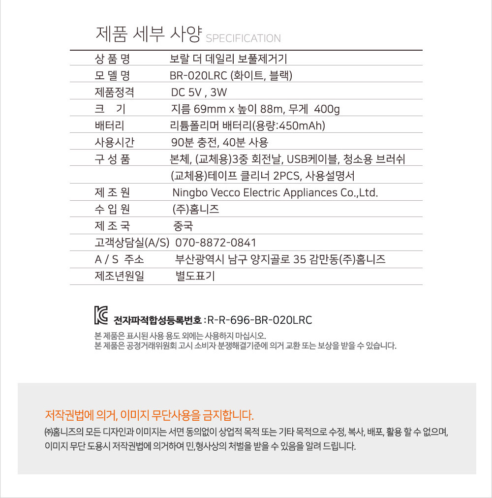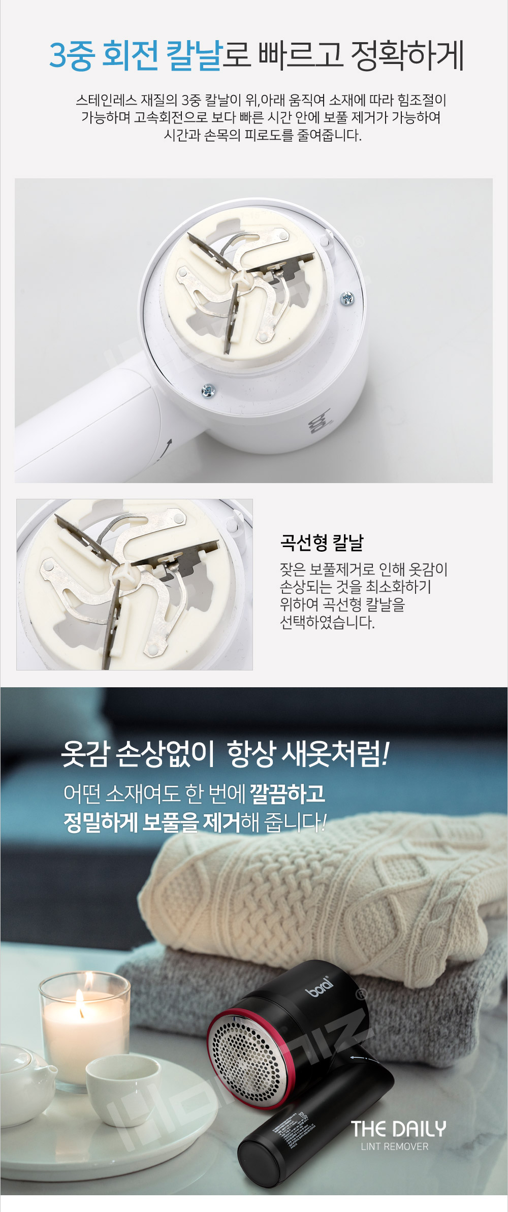 [보랄] 더 데일리 USB 충전식 보풀제거기 (화이트/블랙) BR-020LRC