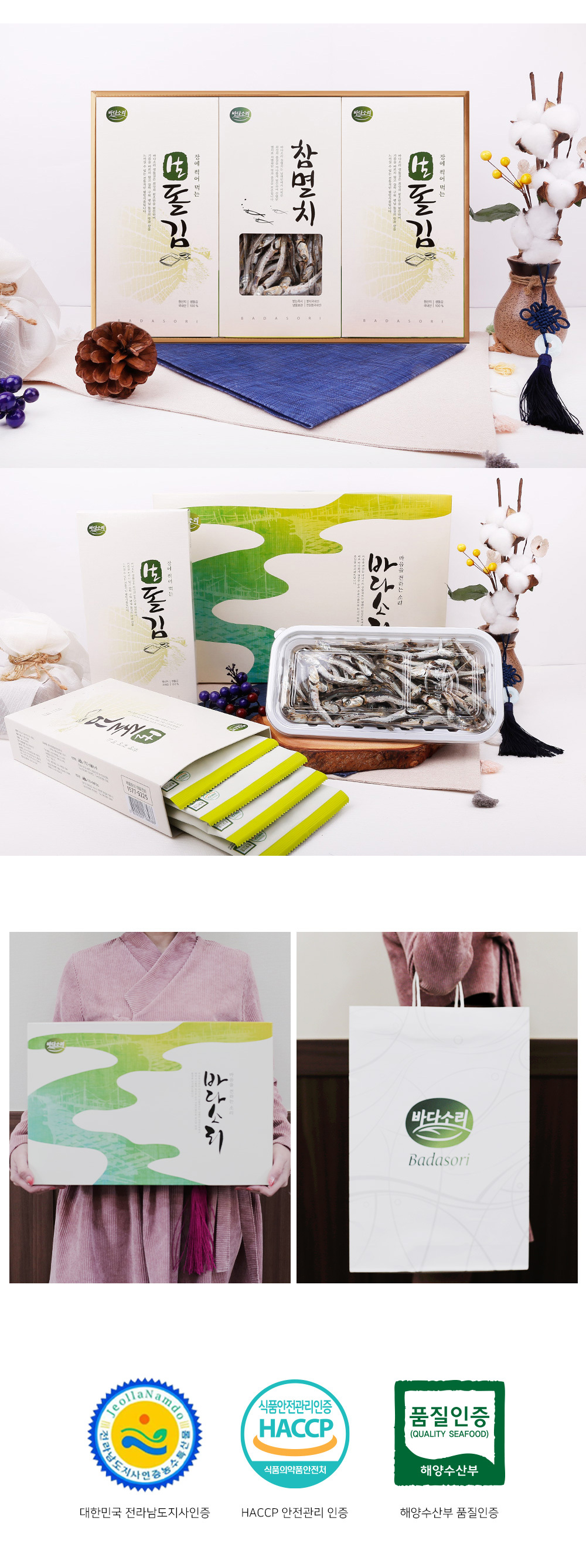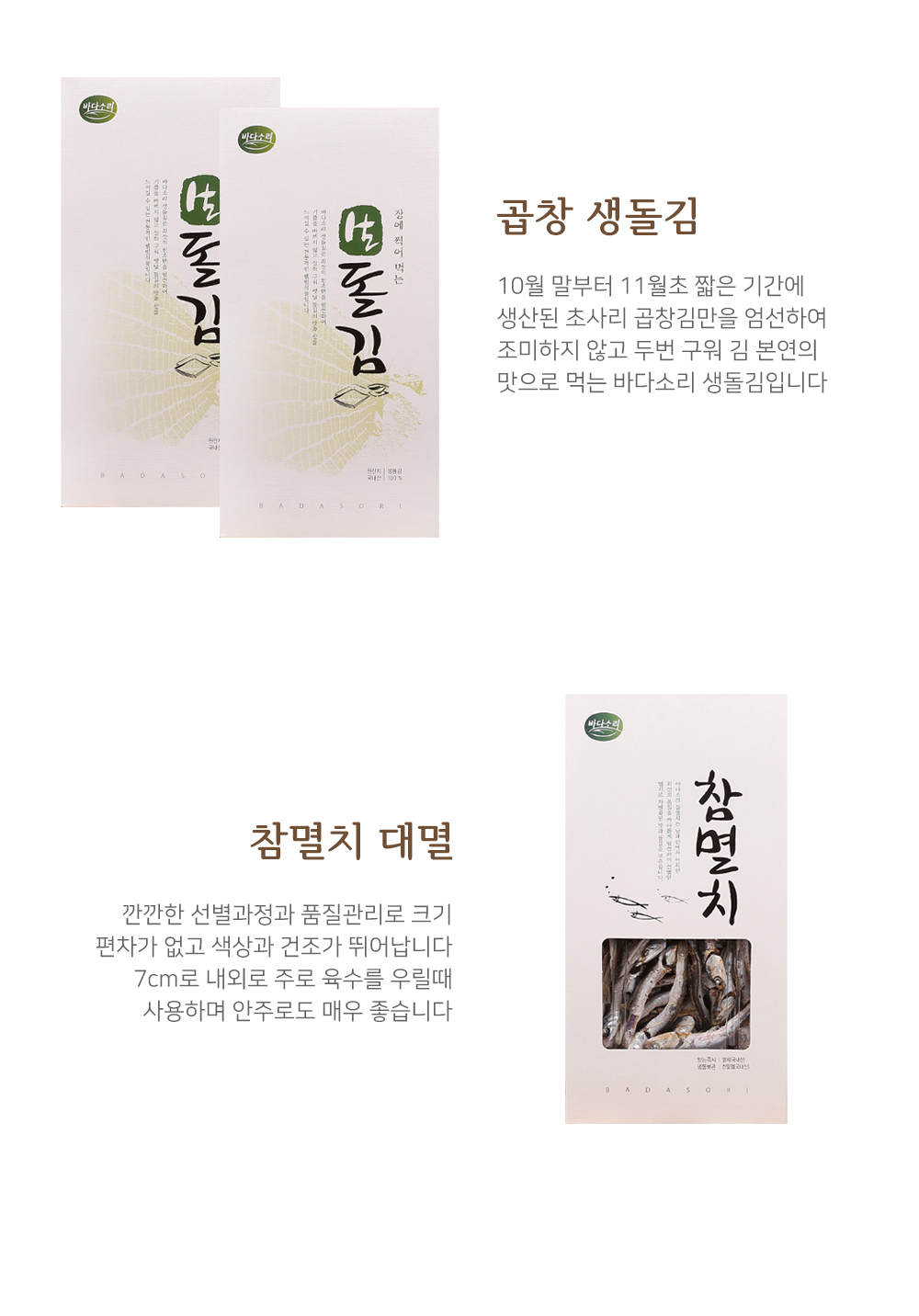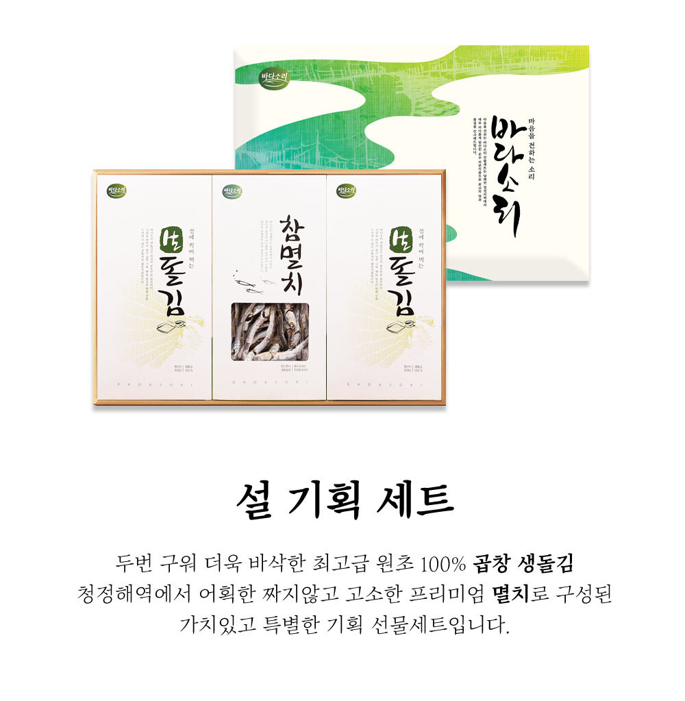 [바다소리] 명절기획세트(생돌김4봉(반절4매)+대멸 200g+생돌김4봉(반절4매))