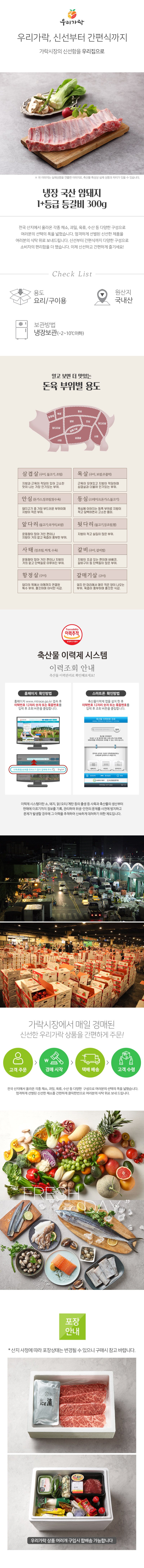 [새벽배송][우리가락]냉장 국산 암돼지 1+등급 등갈비 300g