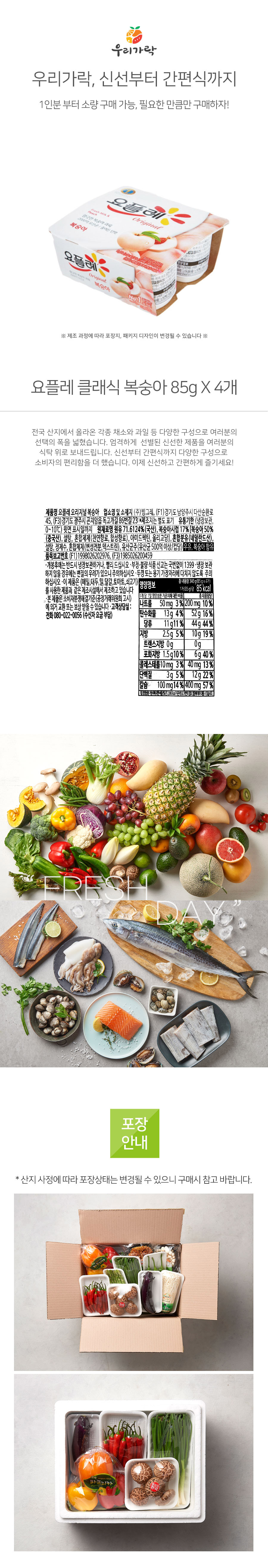 [새벽배송][우리가락]요플레 클랙식 복숭아 85g x 4