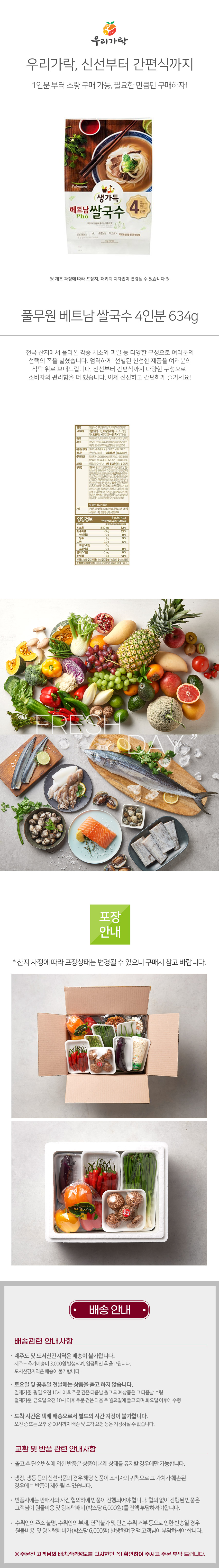 [새벽배송][우리가락]풀무원 베트남 포 쌀국수 4인분 634g
