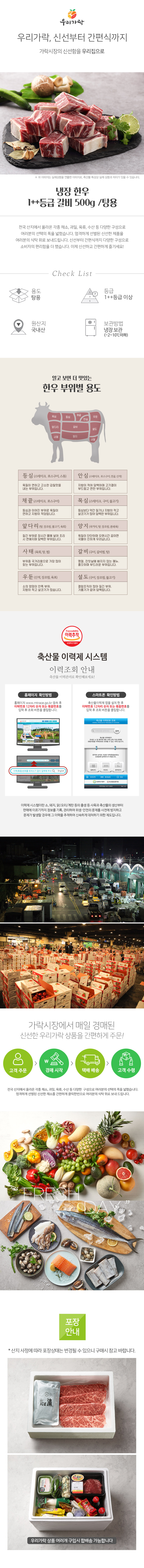 [새벽배송][우리가락]냉장 한우 1++등급 갈비 500g /탕용
