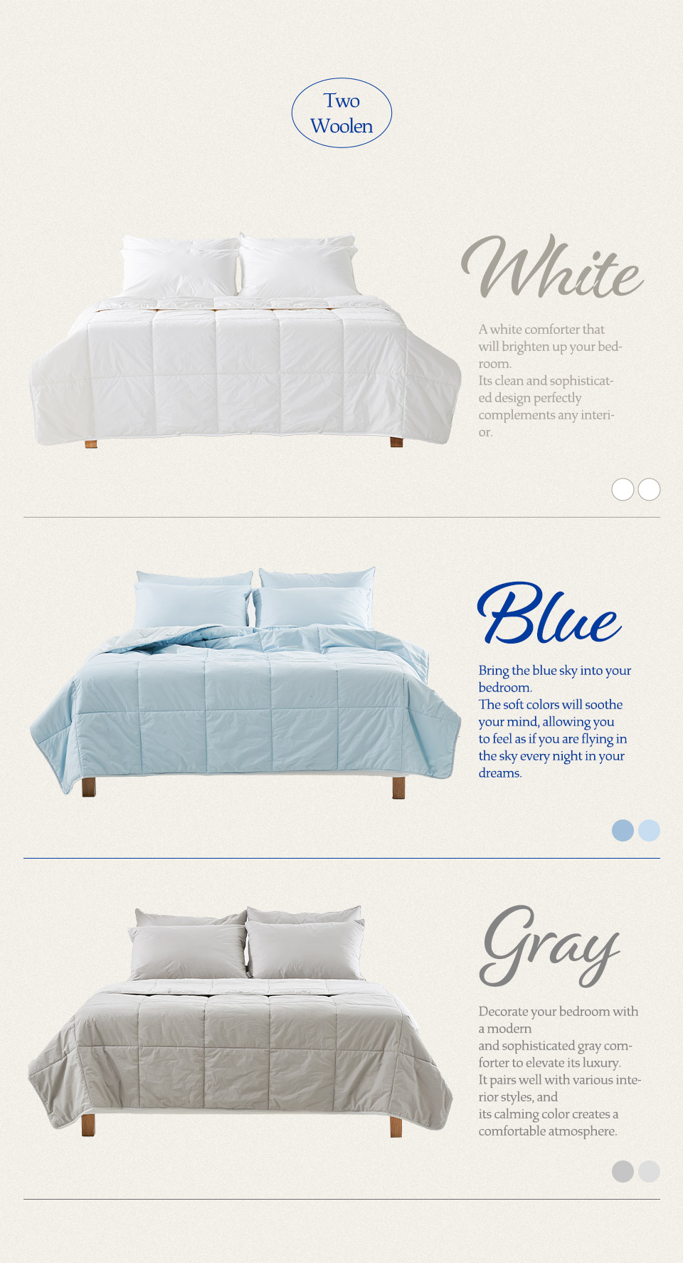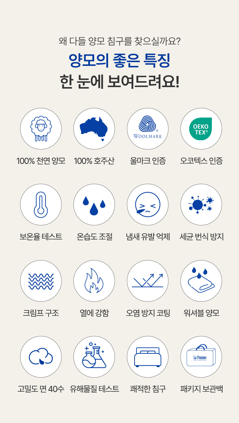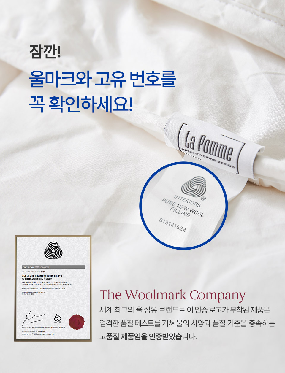 [라뽐므] 간절기/사계절용 투월런 40수 100% 호주산 천연양모 이불솜 SS,Q,K 택1