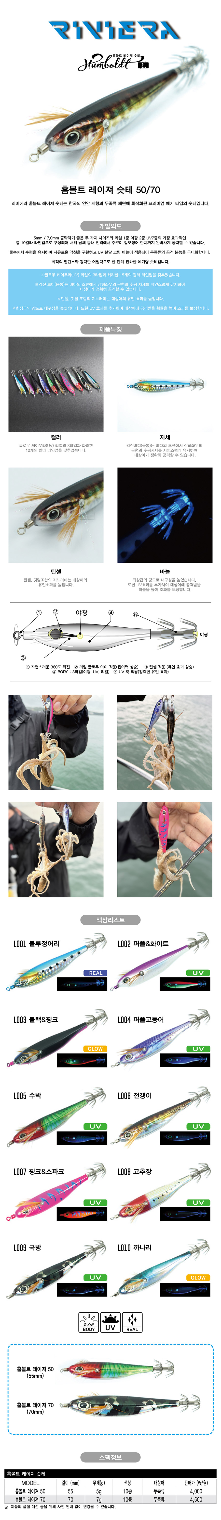 리비에라 홈볼트 레이저 슷테 에기 50 갑오징어 쭈꾸미 쭈갑 야광 케이무라 UV 수평