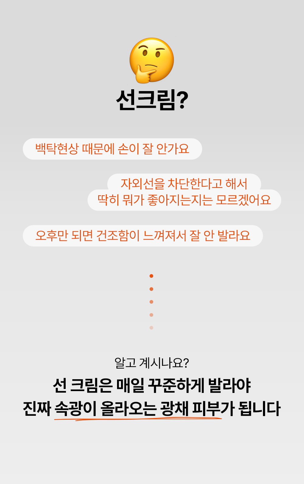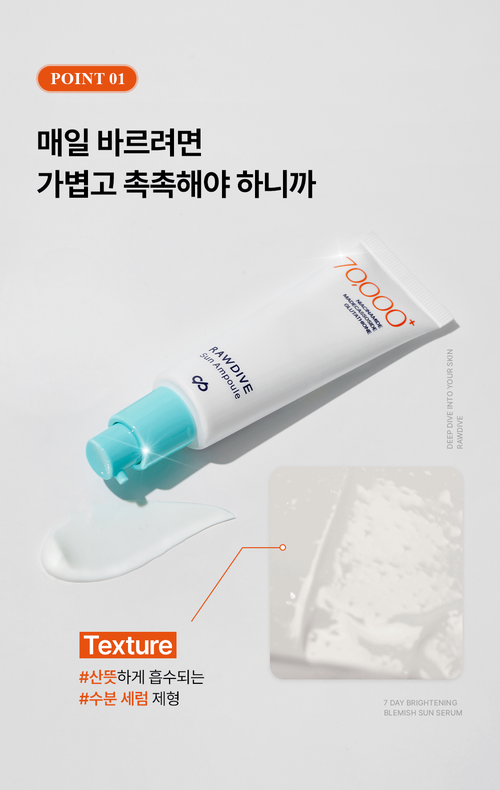 - 스킨케어의 마지막 단계로 외출 30분 전에 적당량을 취해 얼굴, 팔, 다리 등 자외선이 노출되는 부위에 고르게 펴 바른 다음 가볍게 두드려 흡수시켜 줍니다.