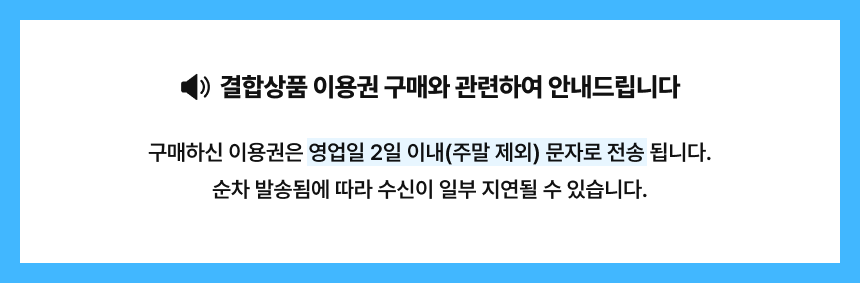 • 구매 후 영업일 2일 이내(주말 제외) 문자 발송