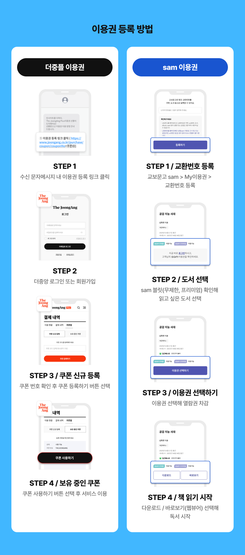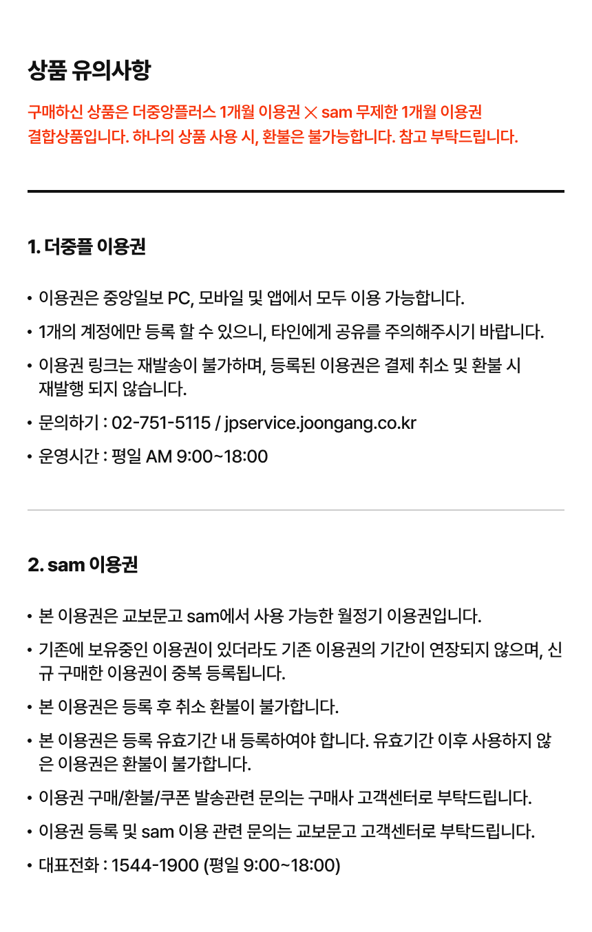 [더중앙플러스] 교보문고 sam 무제한 + 더중앙플러스 1개월 이용권 (영업일 2일 이내 LMS발송/주말,공휴일 제외)