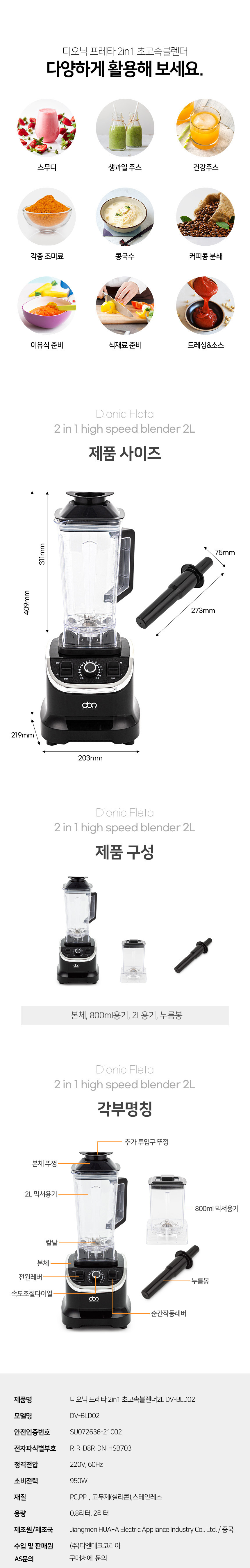 [디오닉] 프레타 2in1 초고속블렌더2L