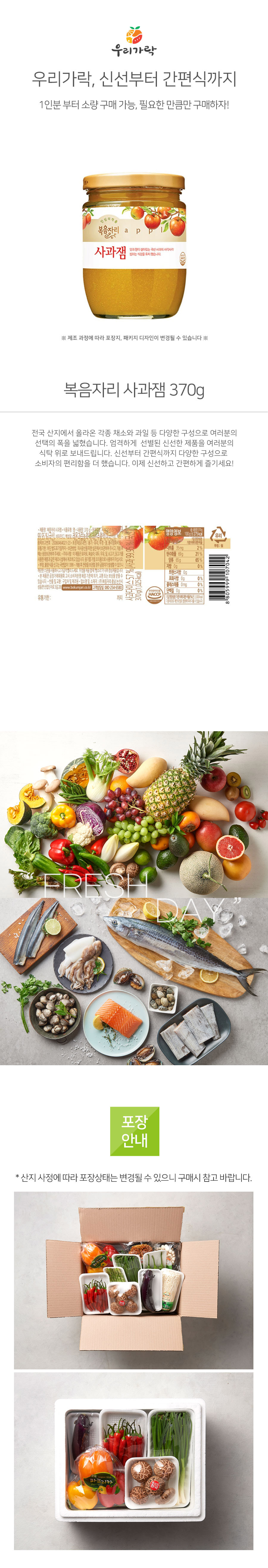 [새벽배송][우리가락]복음자리 사과잼 370g