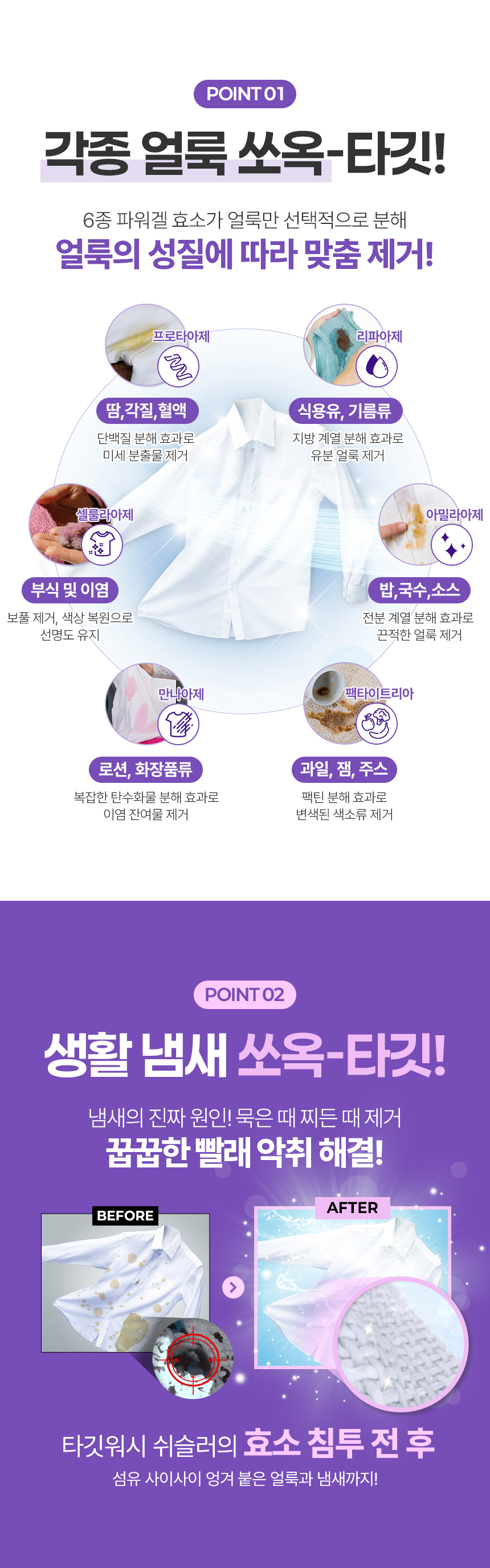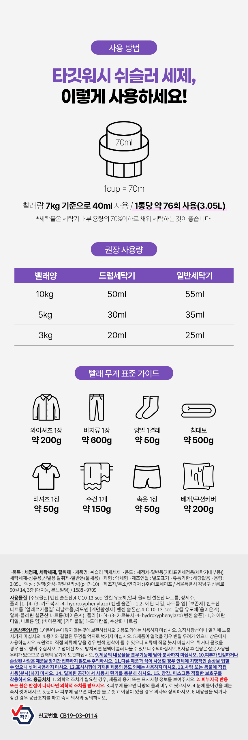 - 용도(표백제의 경우 계열을 함께 표시) 및 제형