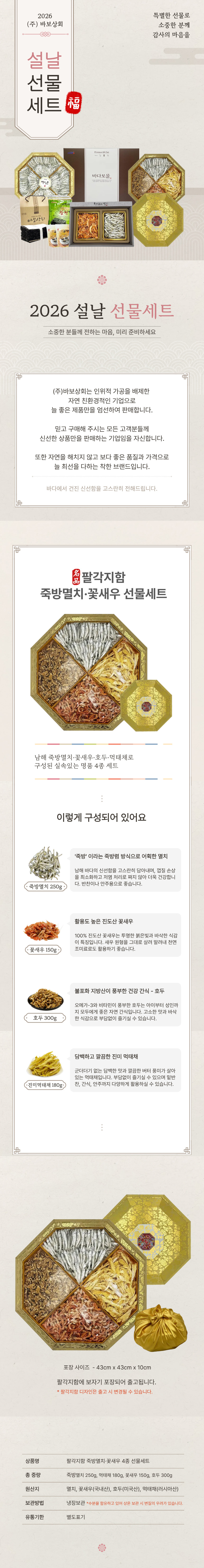 - [바다보물] 팔각지함 죽방멸치, 꽃새우 4종 선물세트(보자기포장)