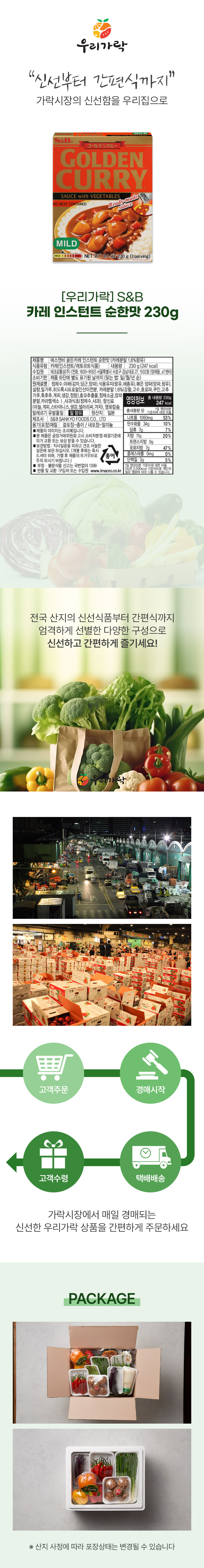[새벽배송][우리가락]S&B 카레 인스턴트 순한맛 230g