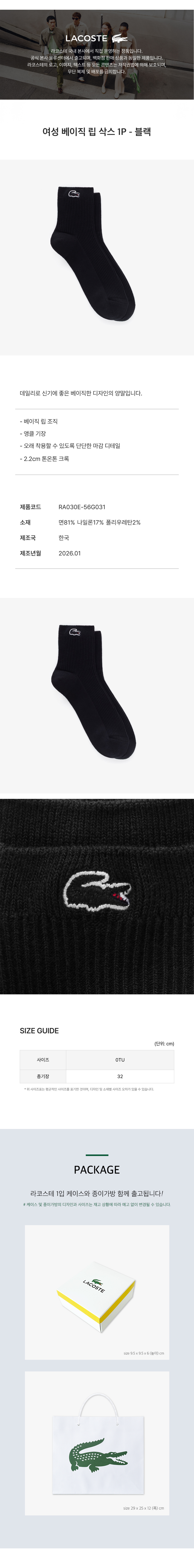 [라코스테] 여성 베이직 립 삭스1P-블랙