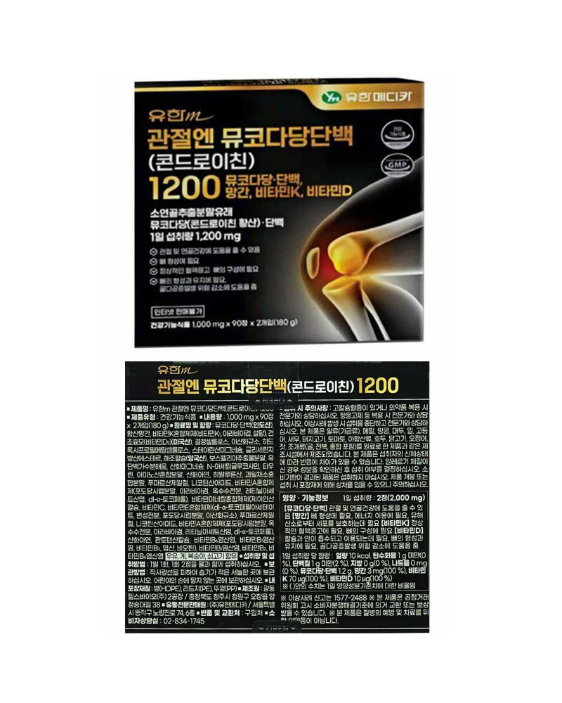 유한m 관절엔 뮤코다당단백 콘드로이친 1200 "1000mg*90T*2EA "
