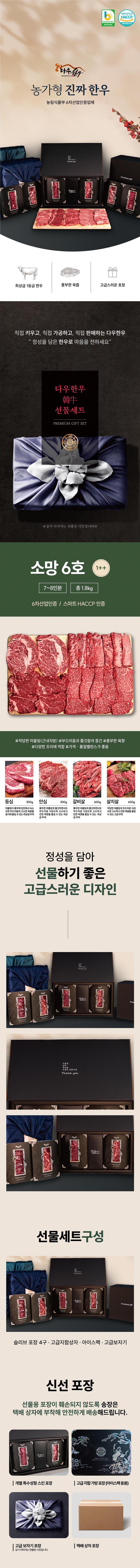 [다우한우] 설맞이 소망6호 1++ (등심300g+안심300g+갈비살600g+살치살600g)
