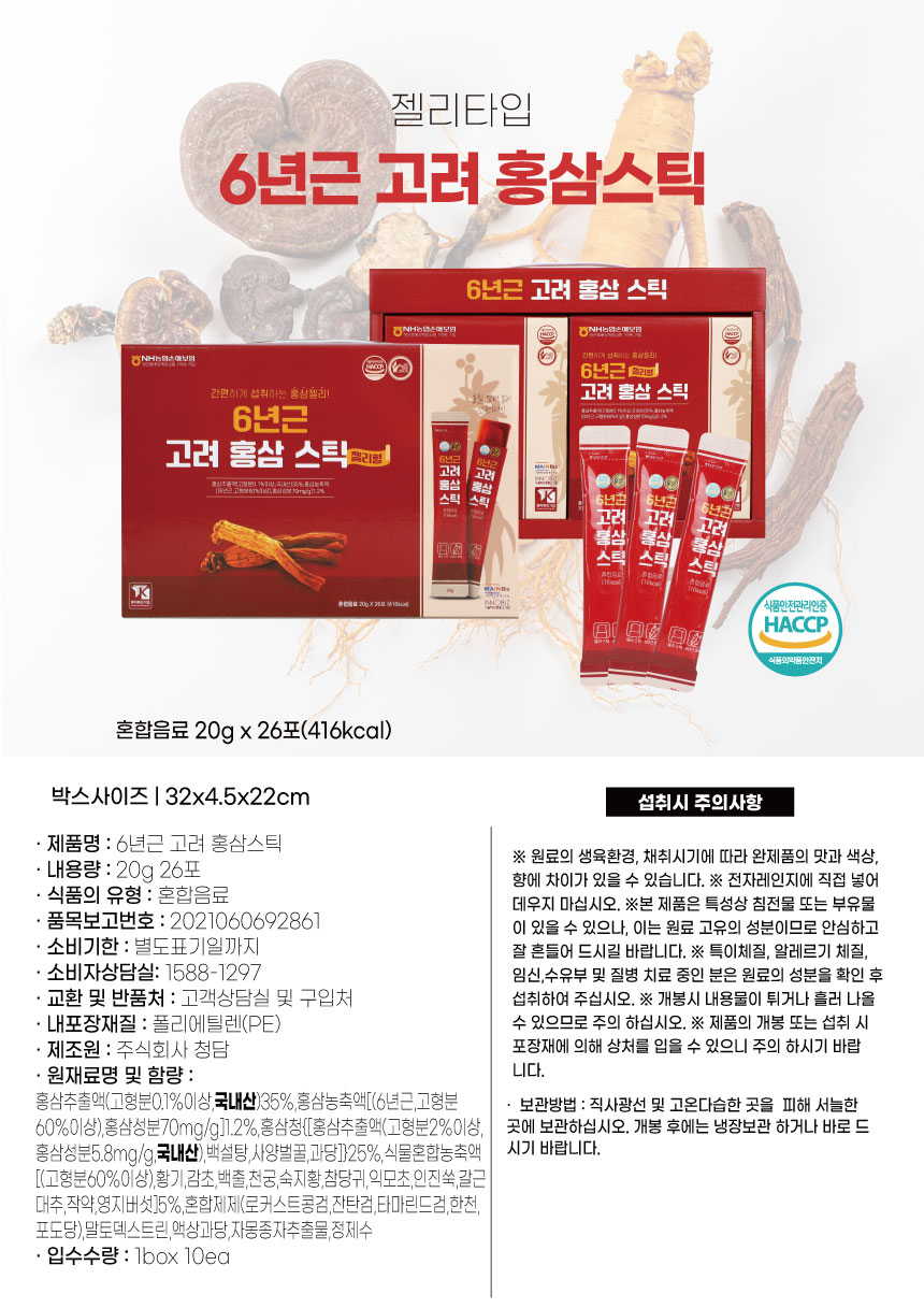 6년근 고려 홍삼스틱 20g*26포