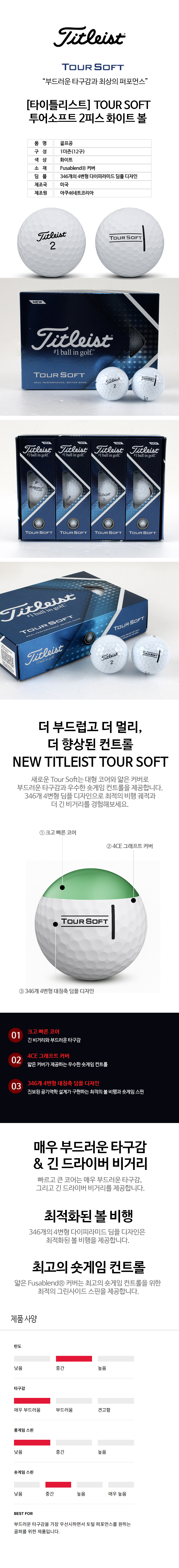 [타이틀리스트] TOUR SOFT 투어 소프트 2피스 골프공 골프볼 화이트 1더즌