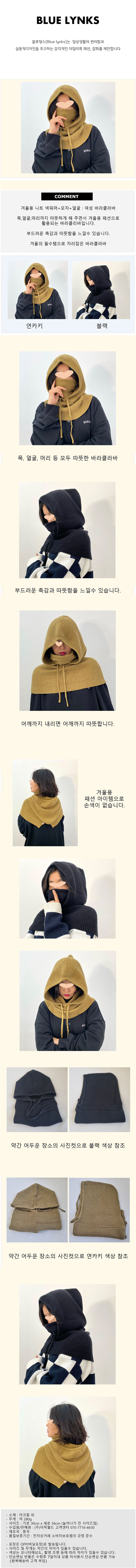 [블루링스] GGS 니트 넥워모 모자 얼굴보온 바라클라바 BLM-GGS01