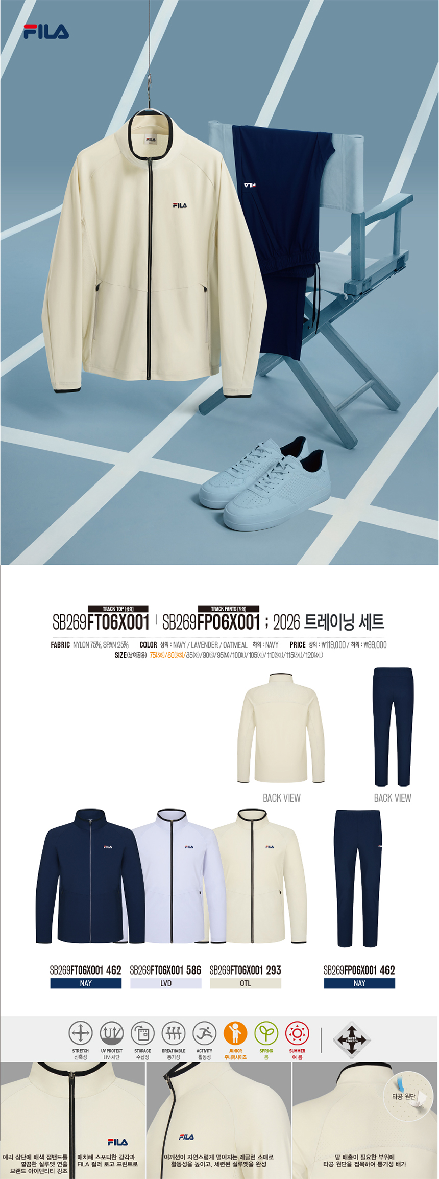 [휠라] 남녀공용 트레이닝복 상,하의 세트 (SB269FT 06X001/SB269FP 06X001)