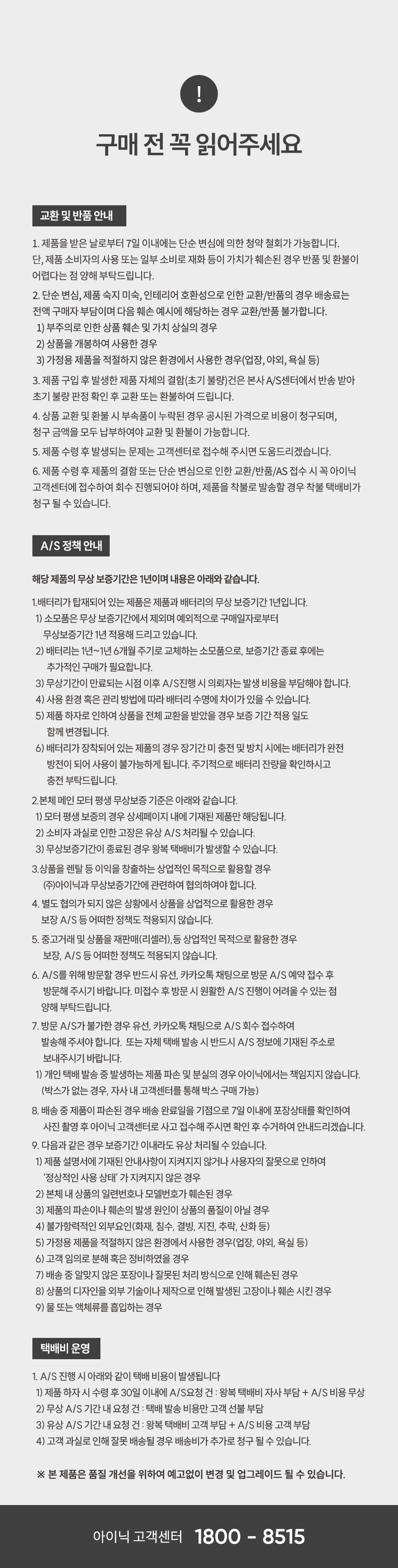 배송/교환/반품/AS 관련 유의사항