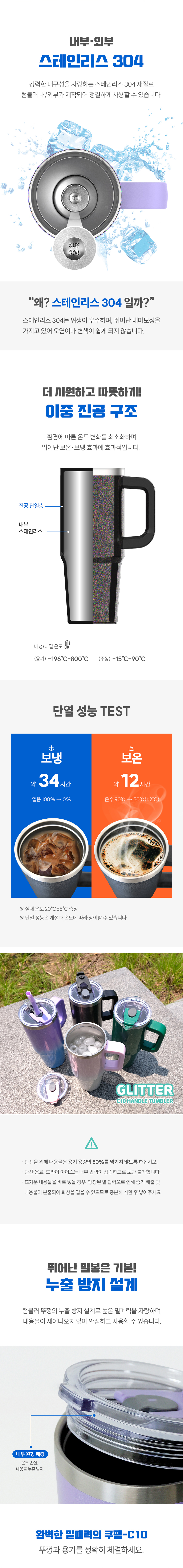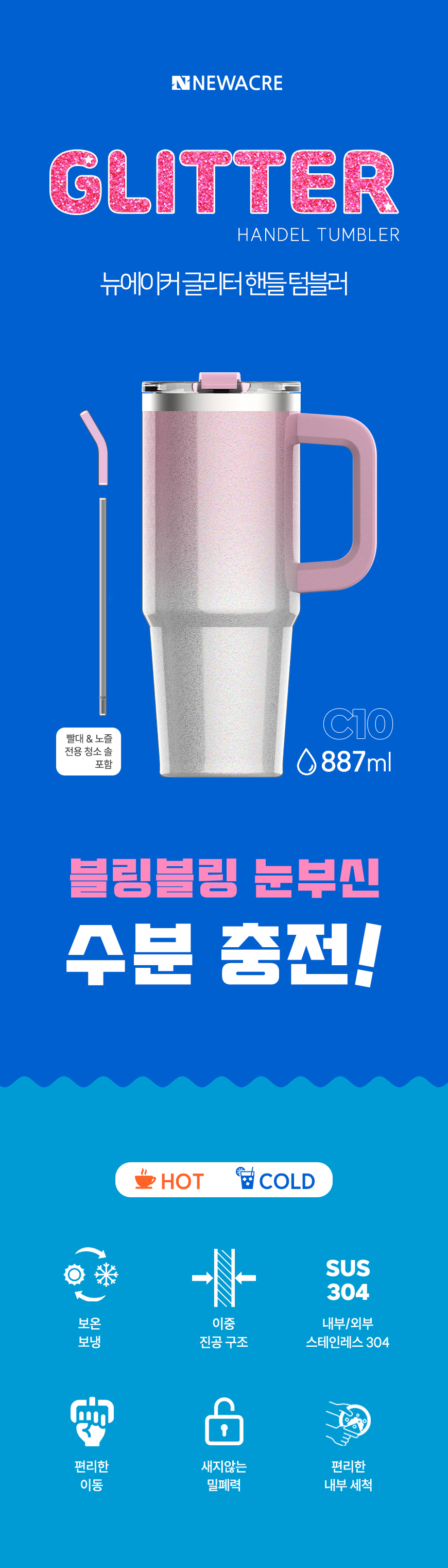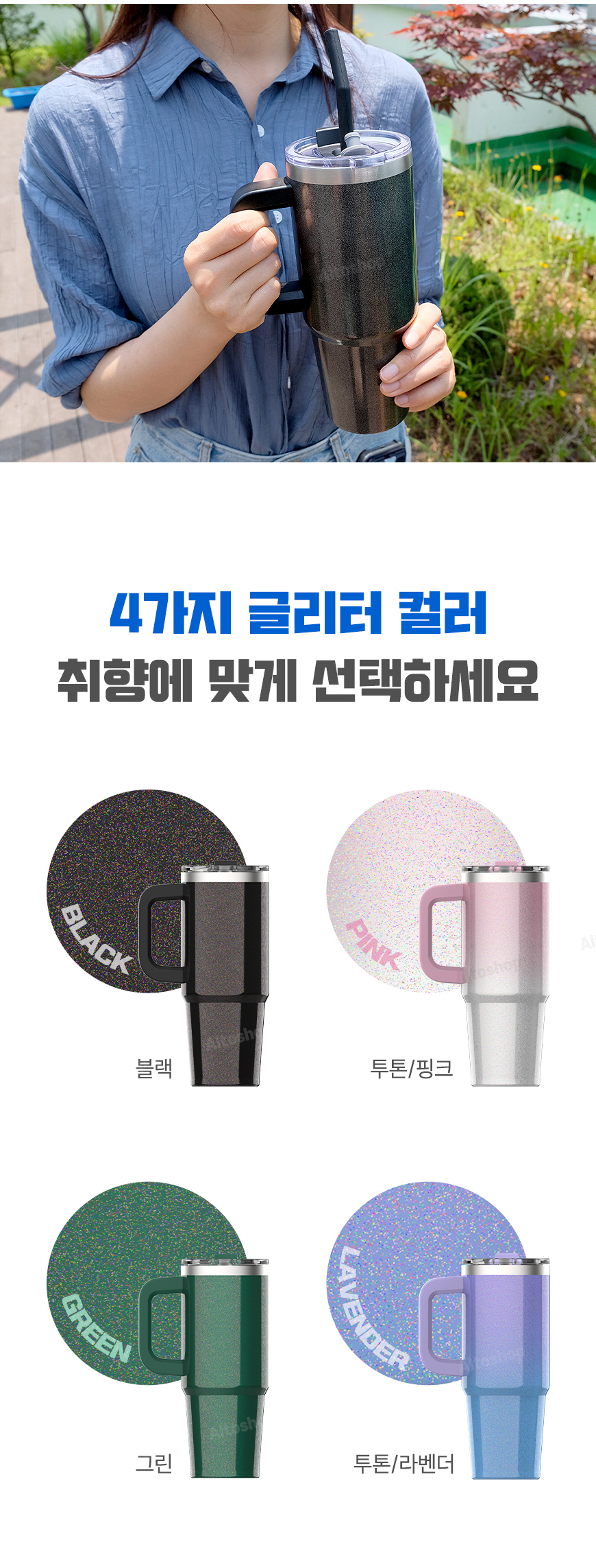 [뉴에이커] 대용량 글리터 핸들 스탠텀블러 보냉 보온 손잡이 텀블러