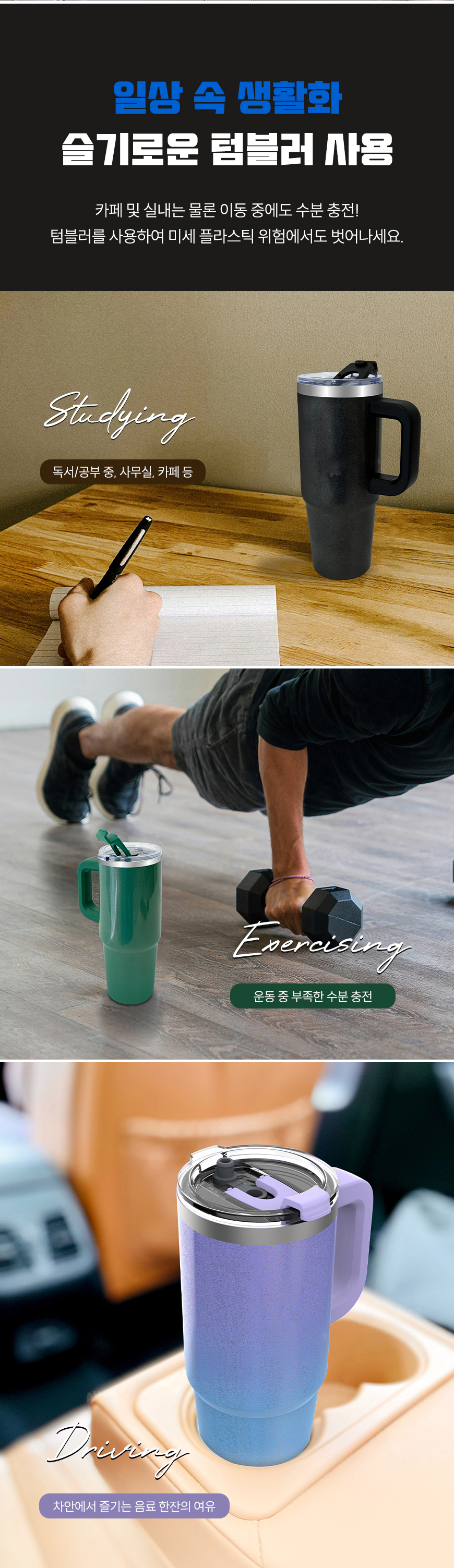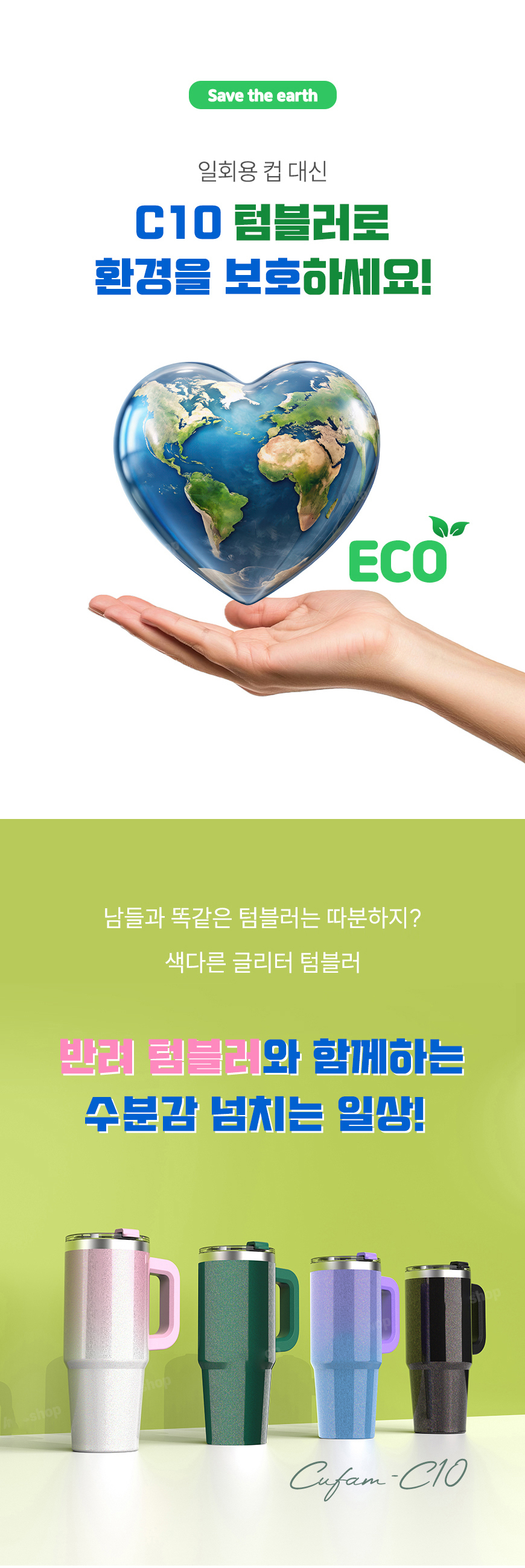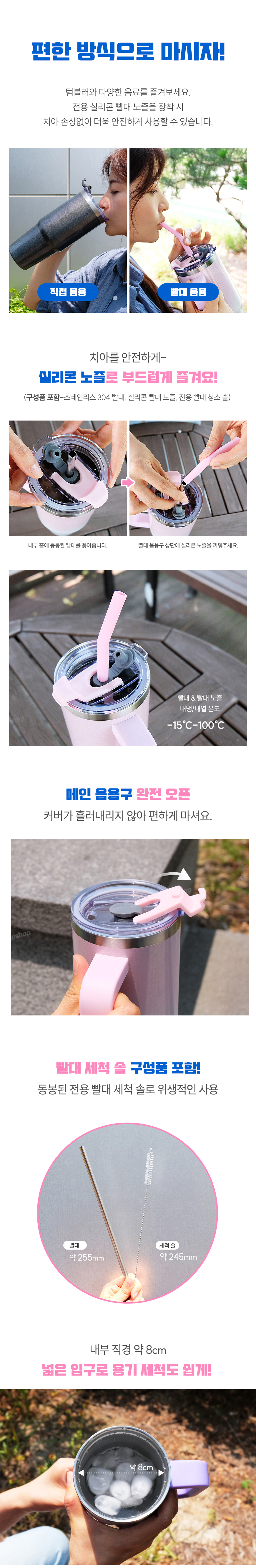 [뉴에이커] 대용량 글리터 핸들 스탠텀블러 보냉 보온 손잡이 텀블러