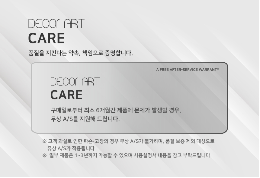 • A/S 기준이나 가능여부는 브랜드와 상품에 따라 다르므로 관련 문의는 고객센터를 통해 부탁드립니다.