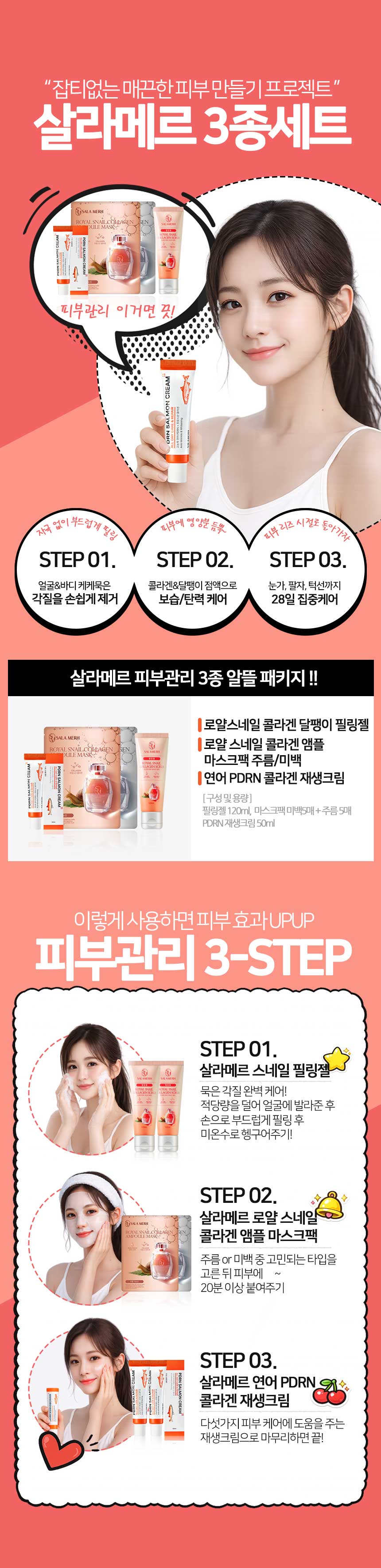 살라메르 로얄 스네일 필링젤+마스크팩+PDRN 재생크림 시너지 기획세트