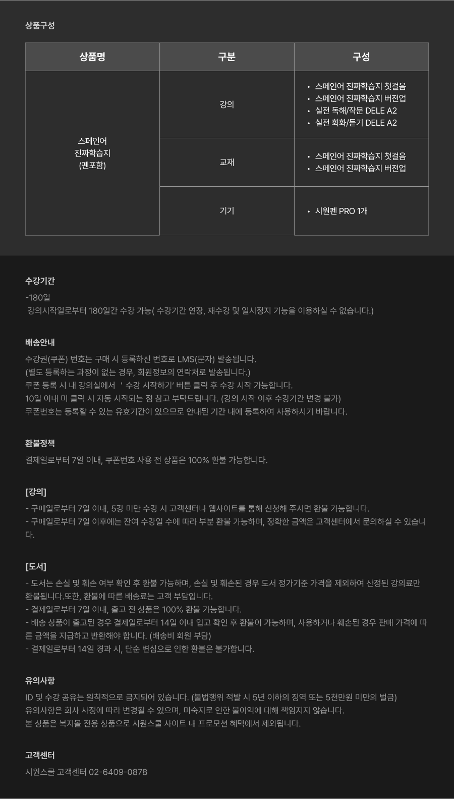 • [교환 및 반품 기타 취소규정] 1. 수강 쿠폰 등록 전에는 7일이내 전액 환불이 가능하며, 수강 쿠폰 번호 등록 이후에는 환불이 불가능 합니다. 2. 시원스쿨 취소/환불 규정에 의함