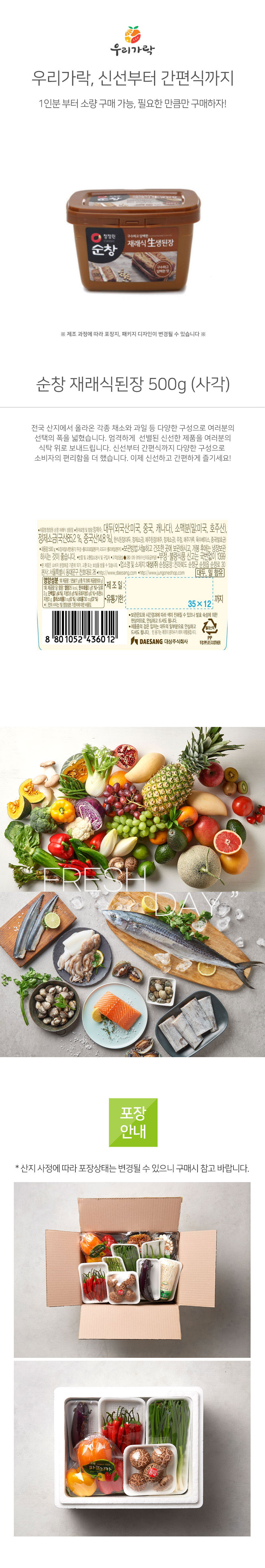 [새벽배송][우리가락]순창 재래식된장 500g (사각)