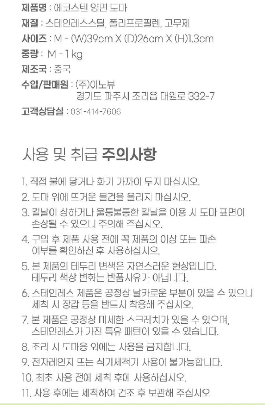 [디라이프] 에코스텐 양면 도마 (M사이즈)