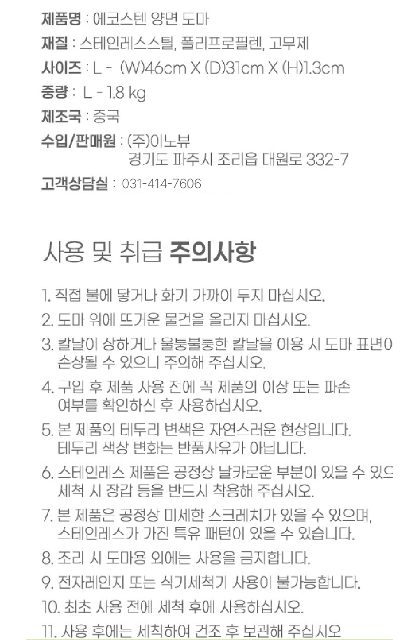 [디라이프] 에코스텐 양면 도마 (L사이즈)