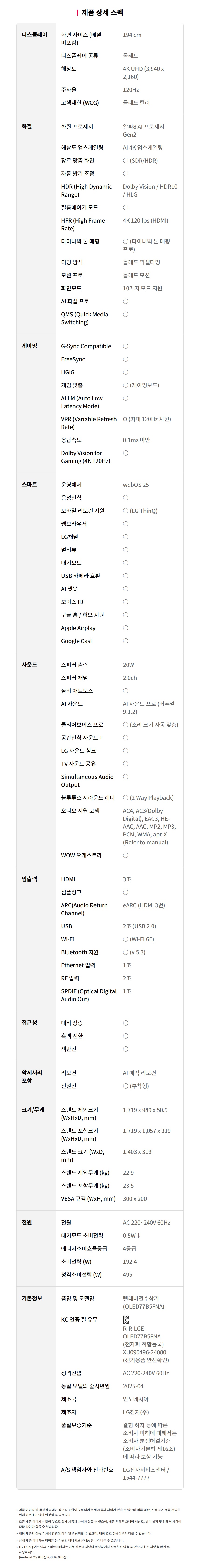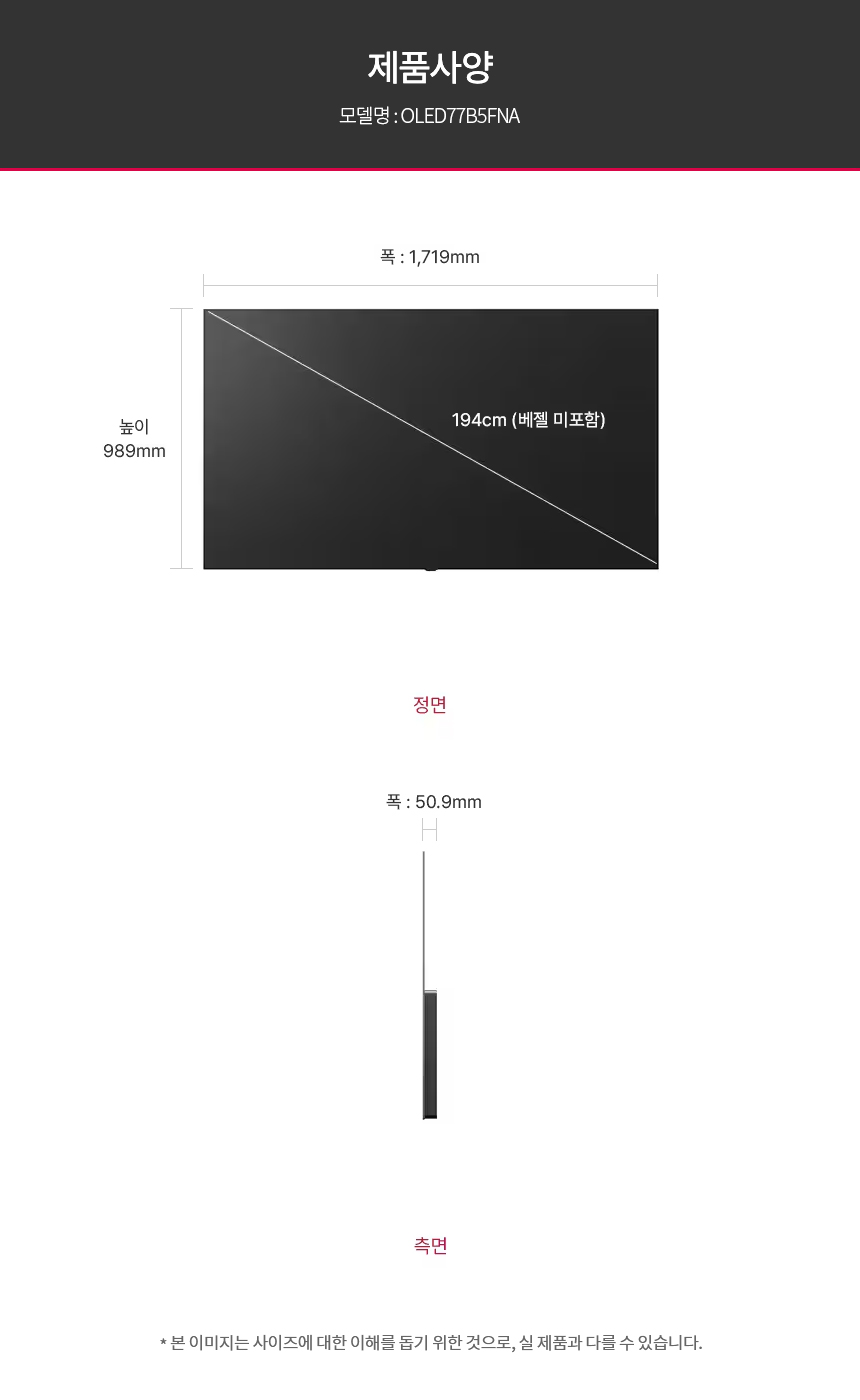 [LG전자] OLED AI 77인치 TV (OLED77B5FS/W)